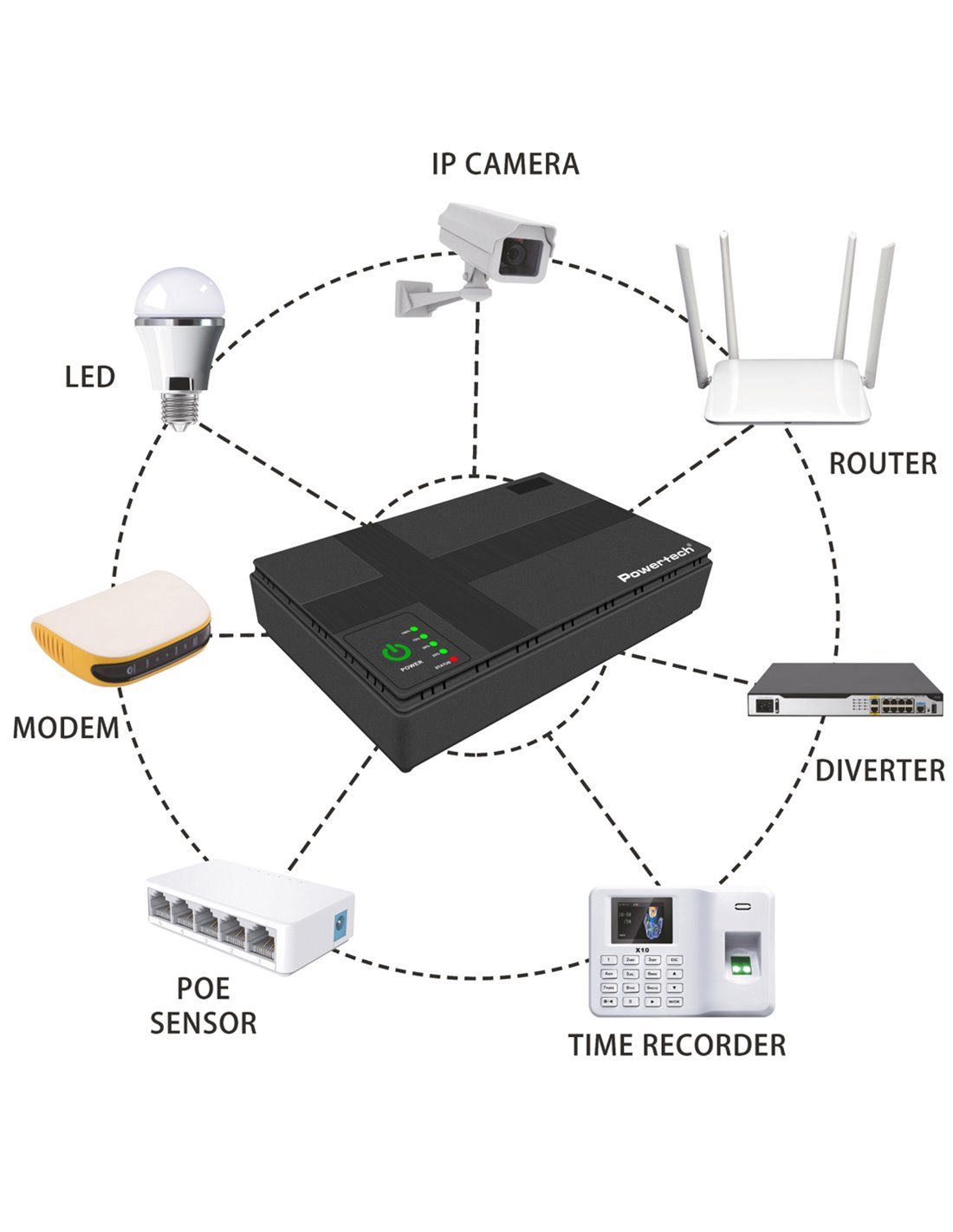 POWERTECH mini DC UPS PT-1434, 18W, 10400mAh, 3x DC, USB/LAN/POE, μαύρο