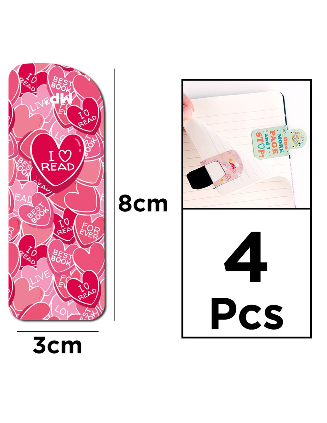 Μαγνητικοί σελιδοδείκτες με σχέδια "I love reading", ιδιαίτερα πρακτικοί, για παιδιά και ενήλικες. Η συσκευασία περιλαμβάνει 4 σελιδοδείκτες.