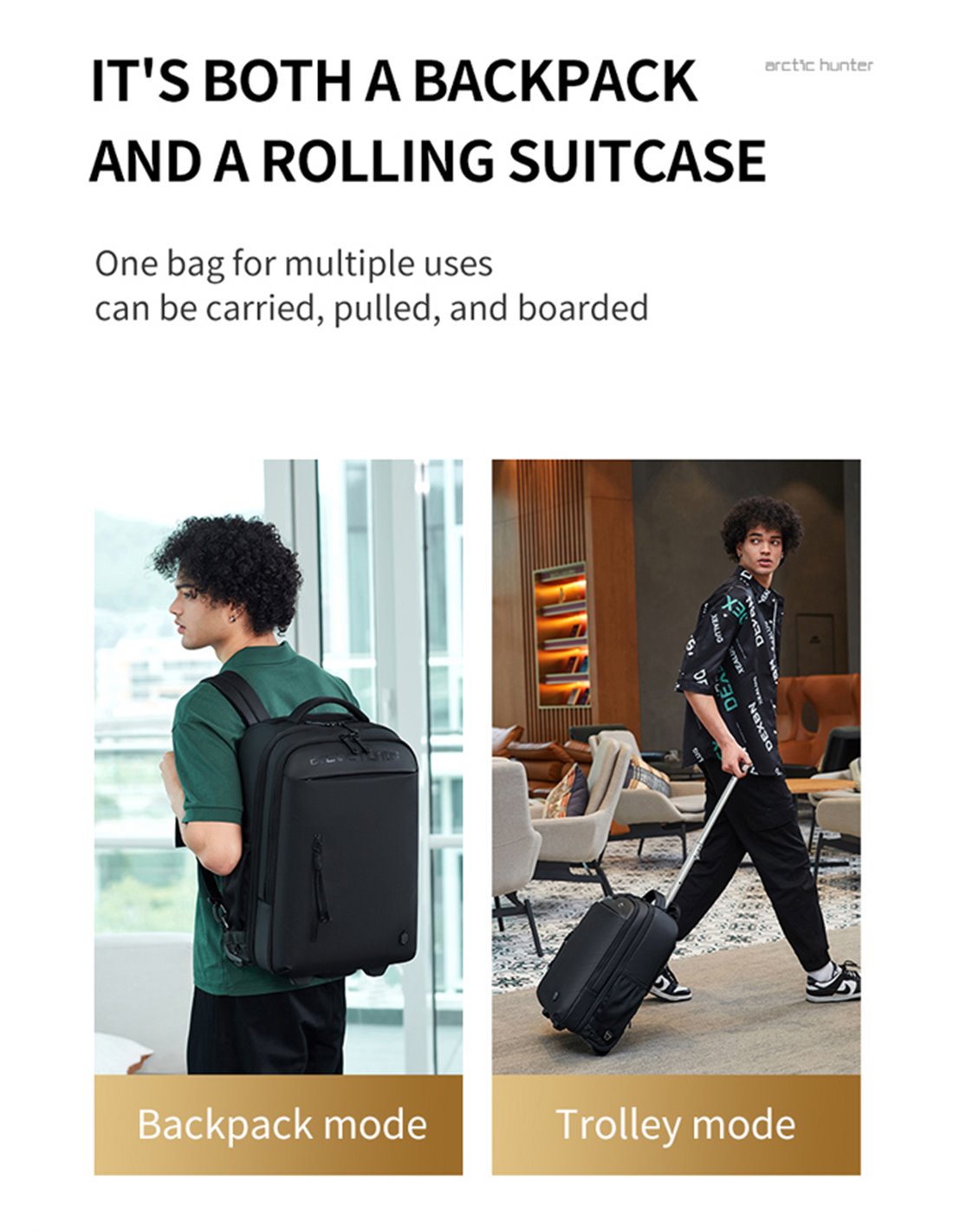 ARCTIC HUNTER τσάντα ταξιδίου LG00657-1 με θήκη laptop 15.6", τροχήλατη, 27L, μαύρη