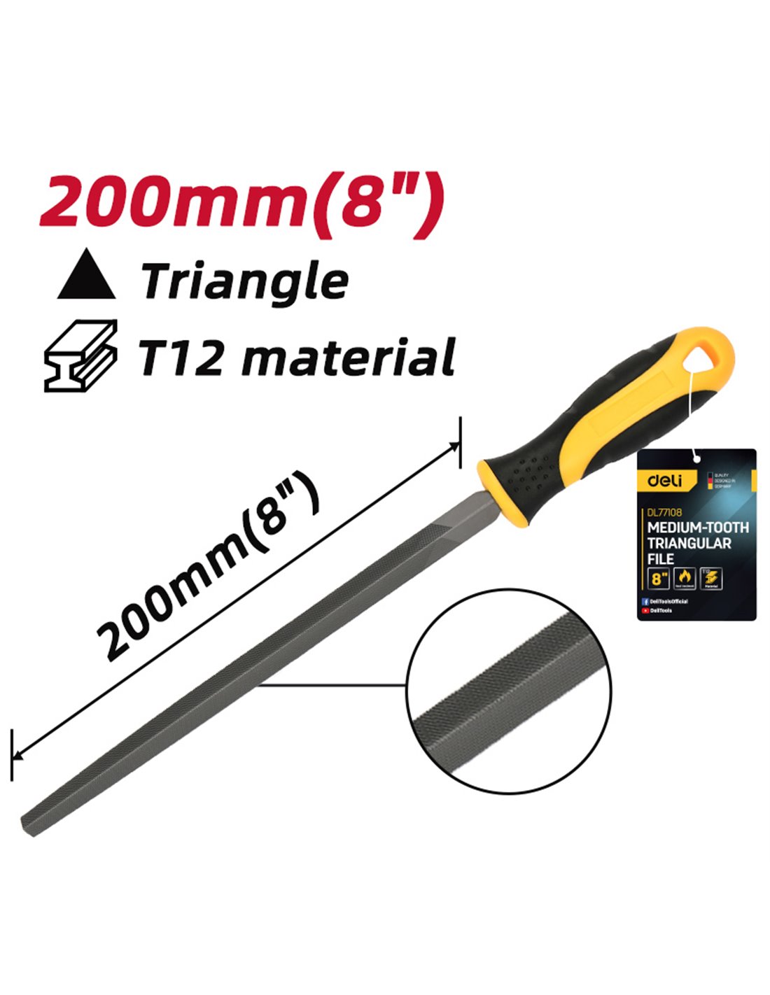 DELI λίμα τριγωνική DL77108 με αντιολισθητική λαβή, μετάλλου, 200mm