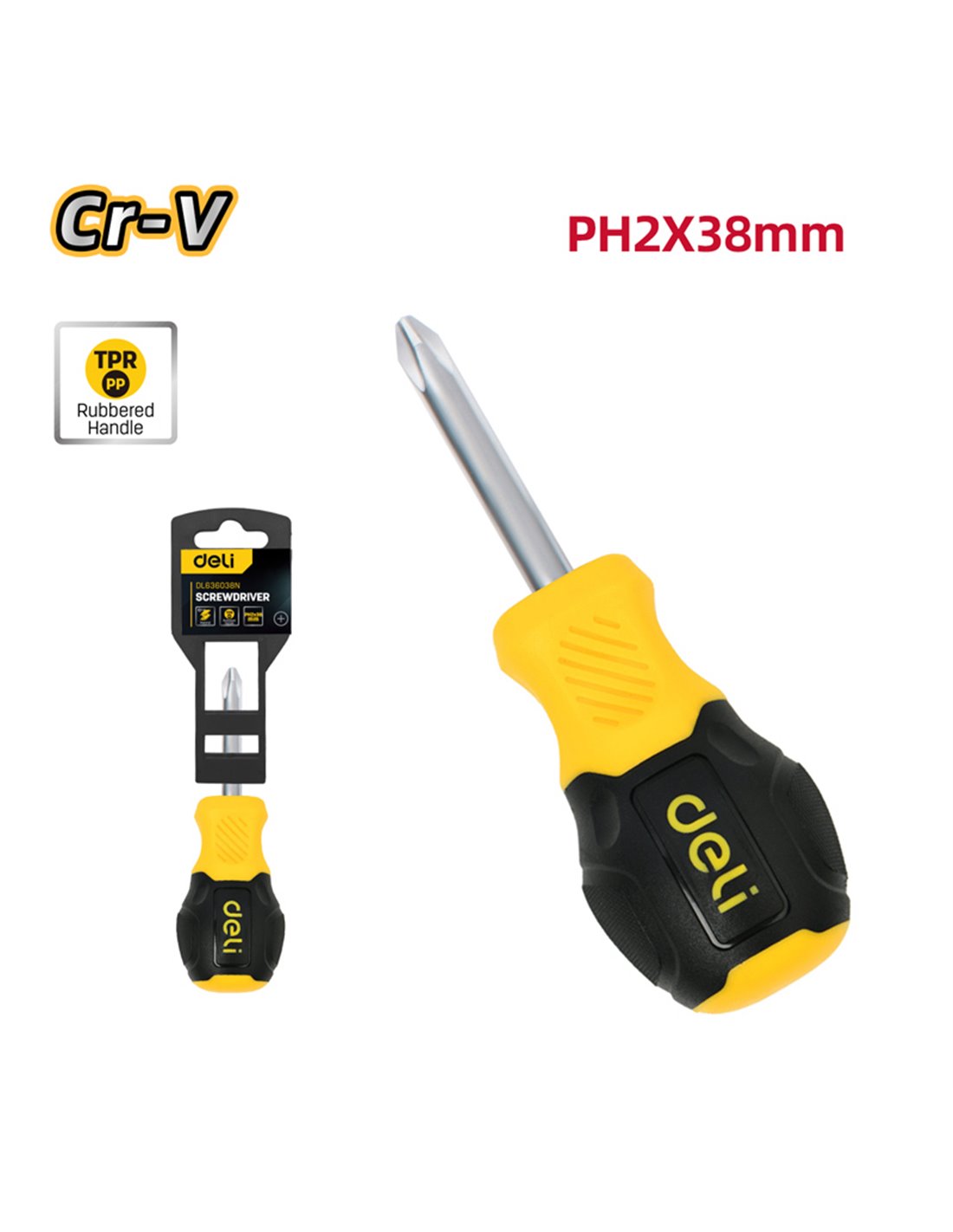 DELI κατσαβίδι σταυρωτό DL636038N με αντιολισθητική λαβή, μαγνητικό, PH2x38mm