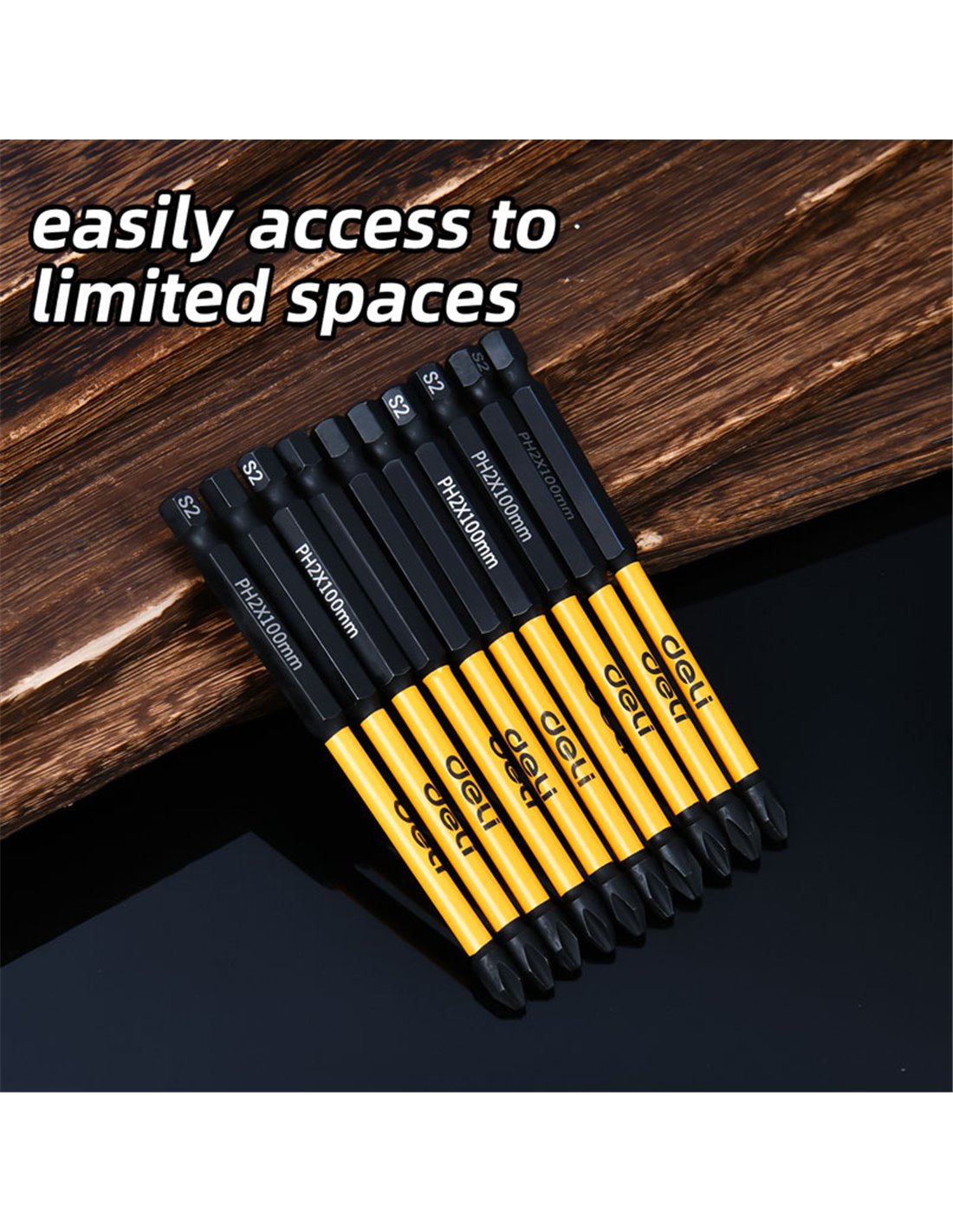 DELI σετ μύτες κατσαβιδιού DL251100 για δράπανο, σταυρωτές, PH2x100mm, 10τμχ