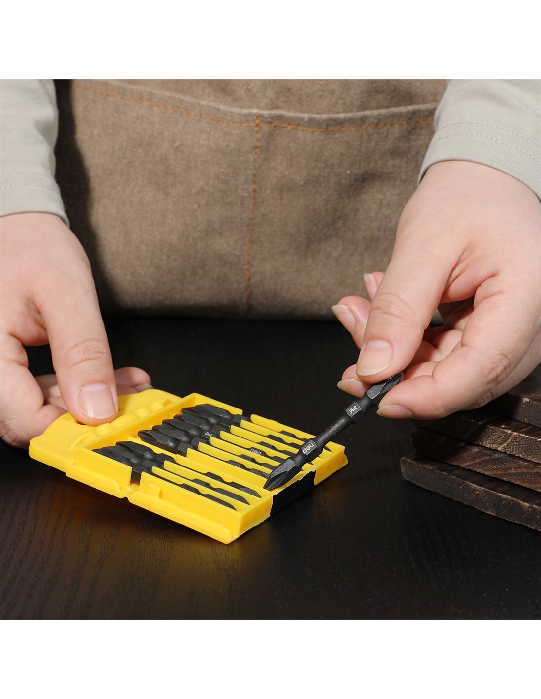 Σετ μύτες κατσαβιδιού της Deli για χρήση με δράπανο ή ηλεκτρικό κατσαβίδι. Η συσκευασία περιλαμβάνει 10 μύτες.