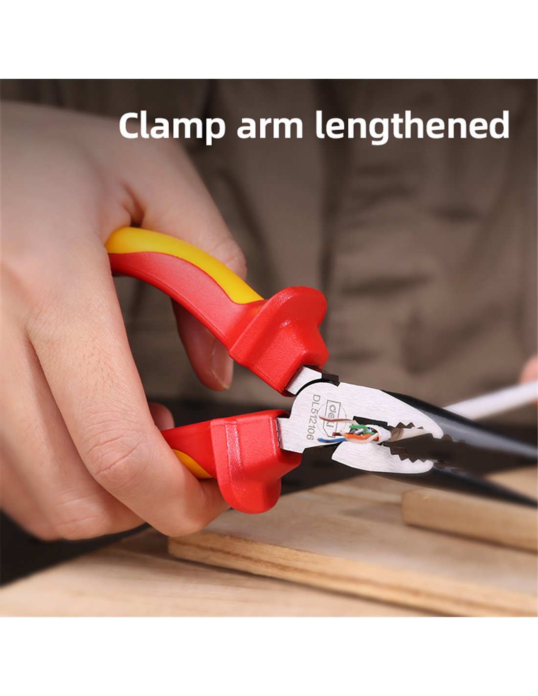 Μυτοτσίμπιδο ίσιο ηλεκτρολόγου της Deli σχεδιασμένο για ασφαλή και αποδοτική εργασία σε ηλεκτρικές εγκαταστάσεις.