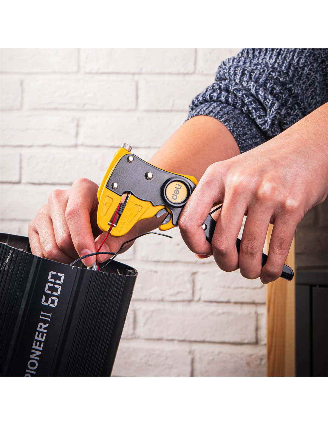 Απογυμνωτής καλωδίων με κόφτη της Deli, ιδανικός για την εύκολη και γρήγορη αφαίρεση μόνωσης από καλώδια διαφόρων διαμέτρων.