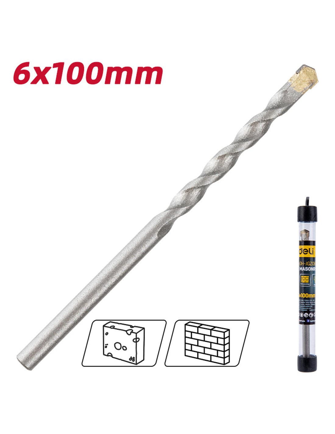 DELI τρυπάνι DH-JGZ060-E1 για τοίχο, 40Cr YG6, 6x100mm, κυλινδρικό