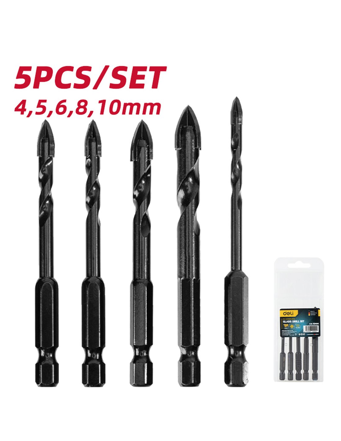 DELI σετ τρυπάνια DH-CZZ005-ED2 για γυαλί, 40Cr YG6X, 4/5/6/8/10mm, εξάγωνο, 5τμχ