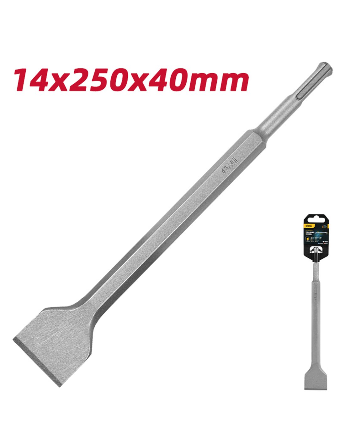 Καλέμι της Deli με SDS Plus στέλεχος για κρουστικό δράπανο, ιδανικό για εργασίες σκαλίσματος και καθαίρεσης σε μπετόν.