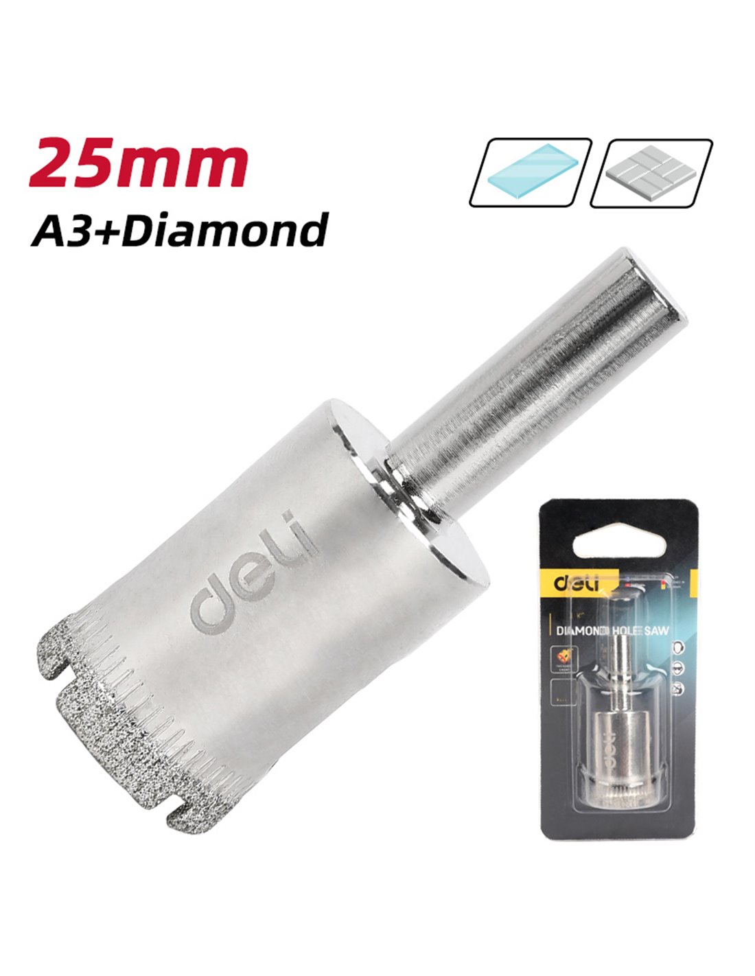 DELI ποτηροτρύπανο διαμαντέ DH-BKK250-E1 για πλακάκια/γυαλί, 25mm διάμετρος