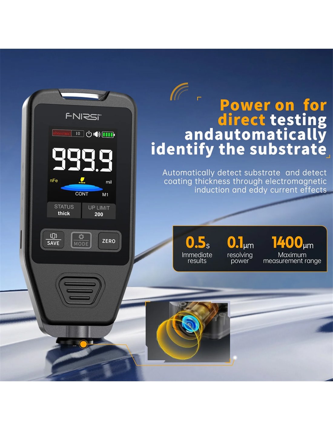 FNIRSI ψηφιακός μετρητής πάχους χρώματος CTG-20, 0-1400μm, επαναφορτιζόμενος
