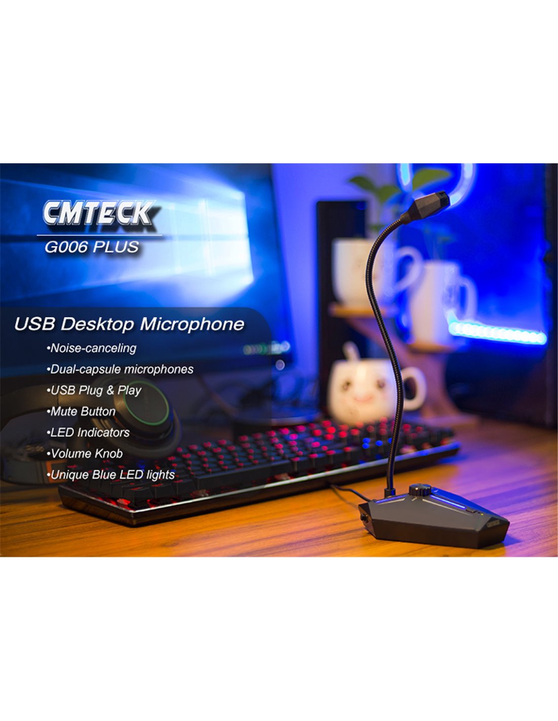 Το επιτραπέζιο μικρόφωνο της CMTECK προσφέρει καθαρή φωνητική καταγραφή με τεχνολογία μείωσης θορύβου, ιδανικό για gaming, τηλεδιασκέψεις, online μαθήματα κ.α.