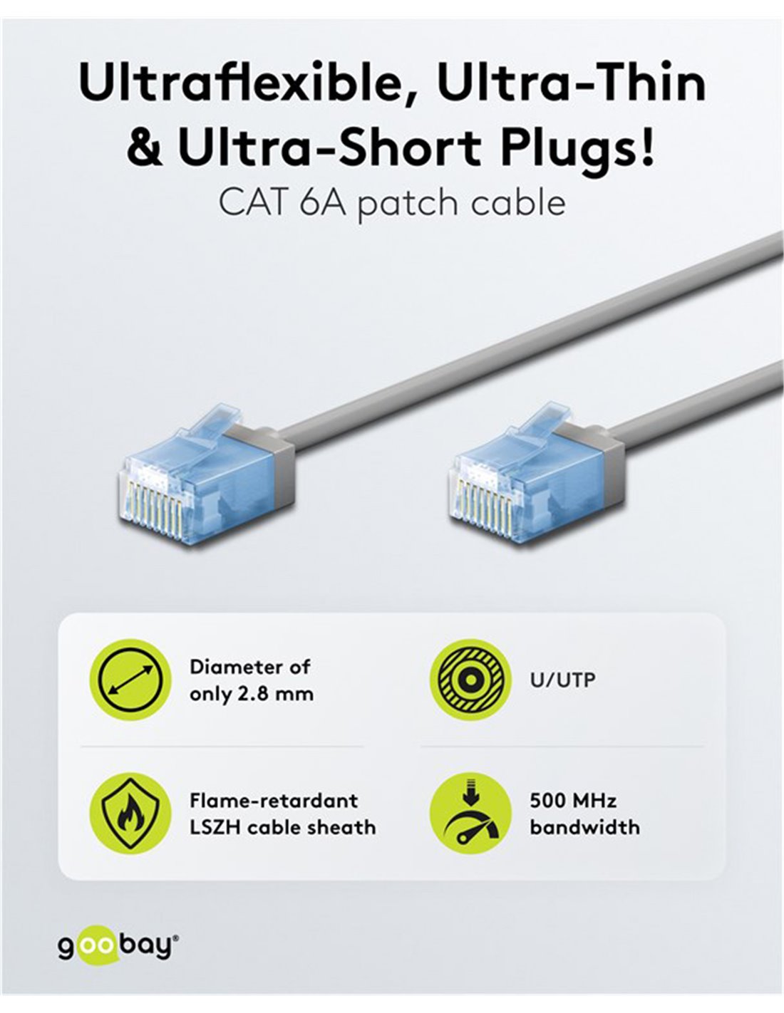 GOOBAY καλώδιο δικτύου 74227, CAT 6A U/UTP, ultra slim, copper, 500MHz, 10m, γκρι