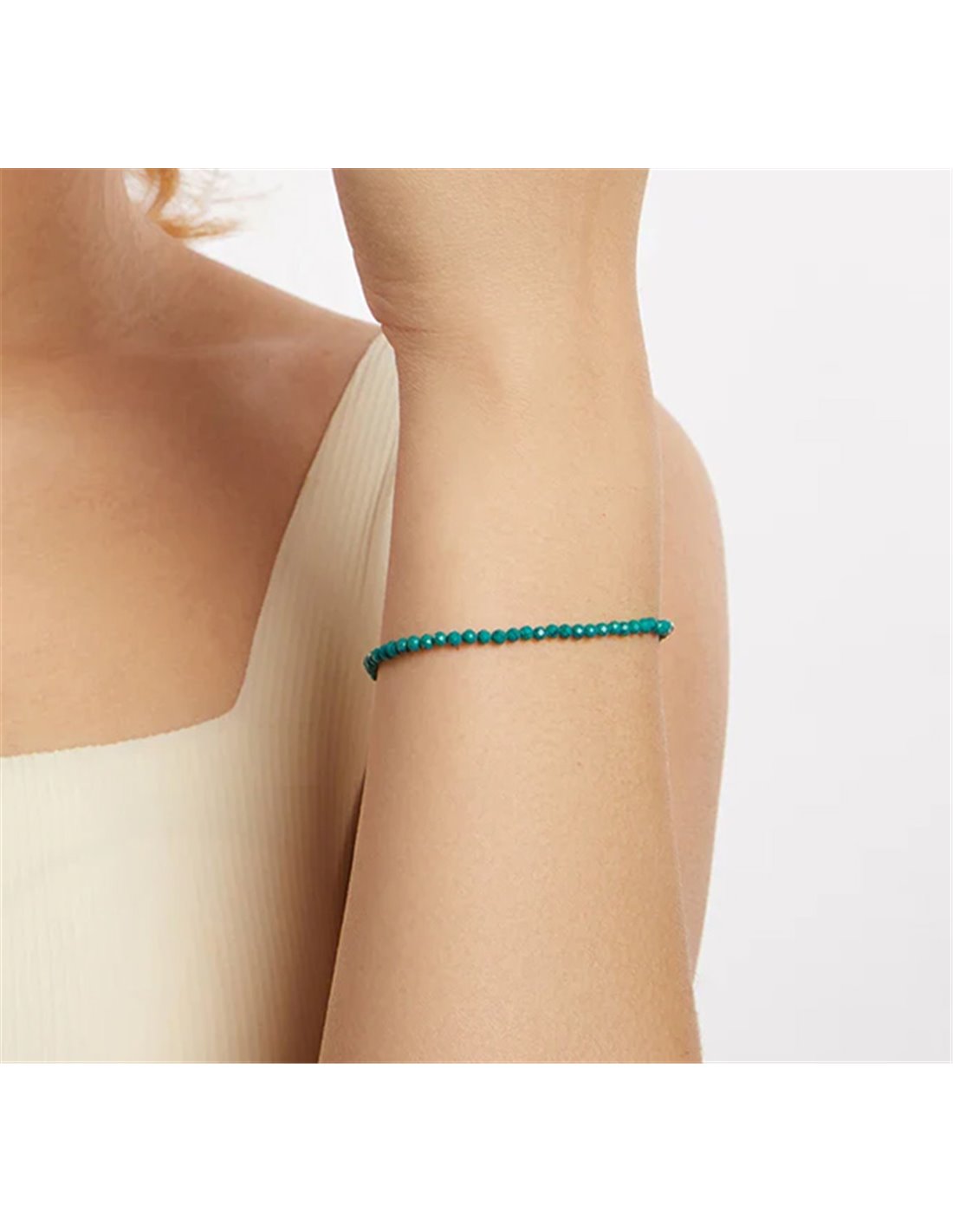 Κομψό βραχιόλι, διακοσμημένο με συνθετικές τουρκουάζ χάντρες, που προσφέρουν μοναδική λάμψη στο κόσμημα και προσδίδουν στυλ σε κάθε εμφάνιση.