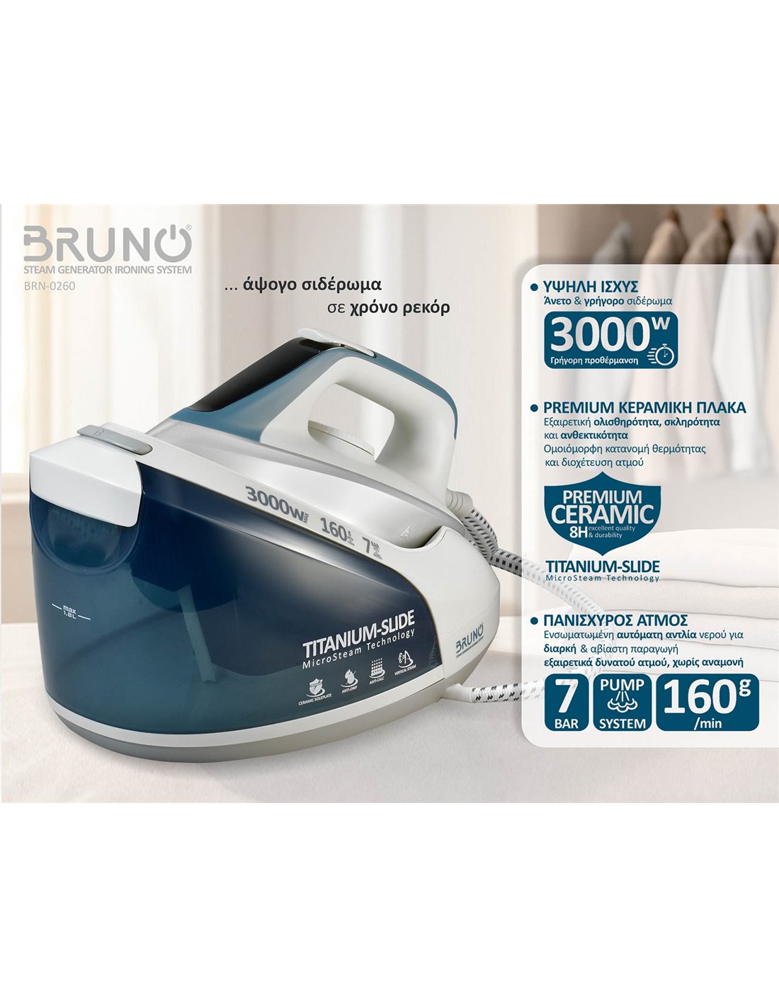 BRUNO σύστημα σιδερώματος BRN-0260, πίεσης 7bar, με δοχείο 1.8L, 3000W