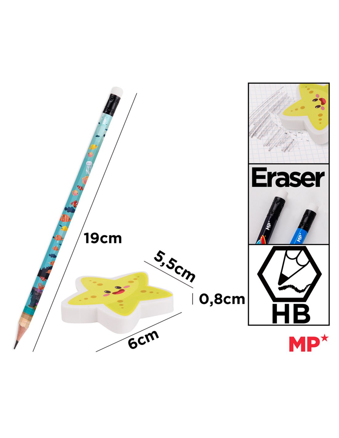 MP σετ ξύλινα μολύβια & γόμα World oceans day PPE356-05, εξάγωνα, HB, 5τμχ
