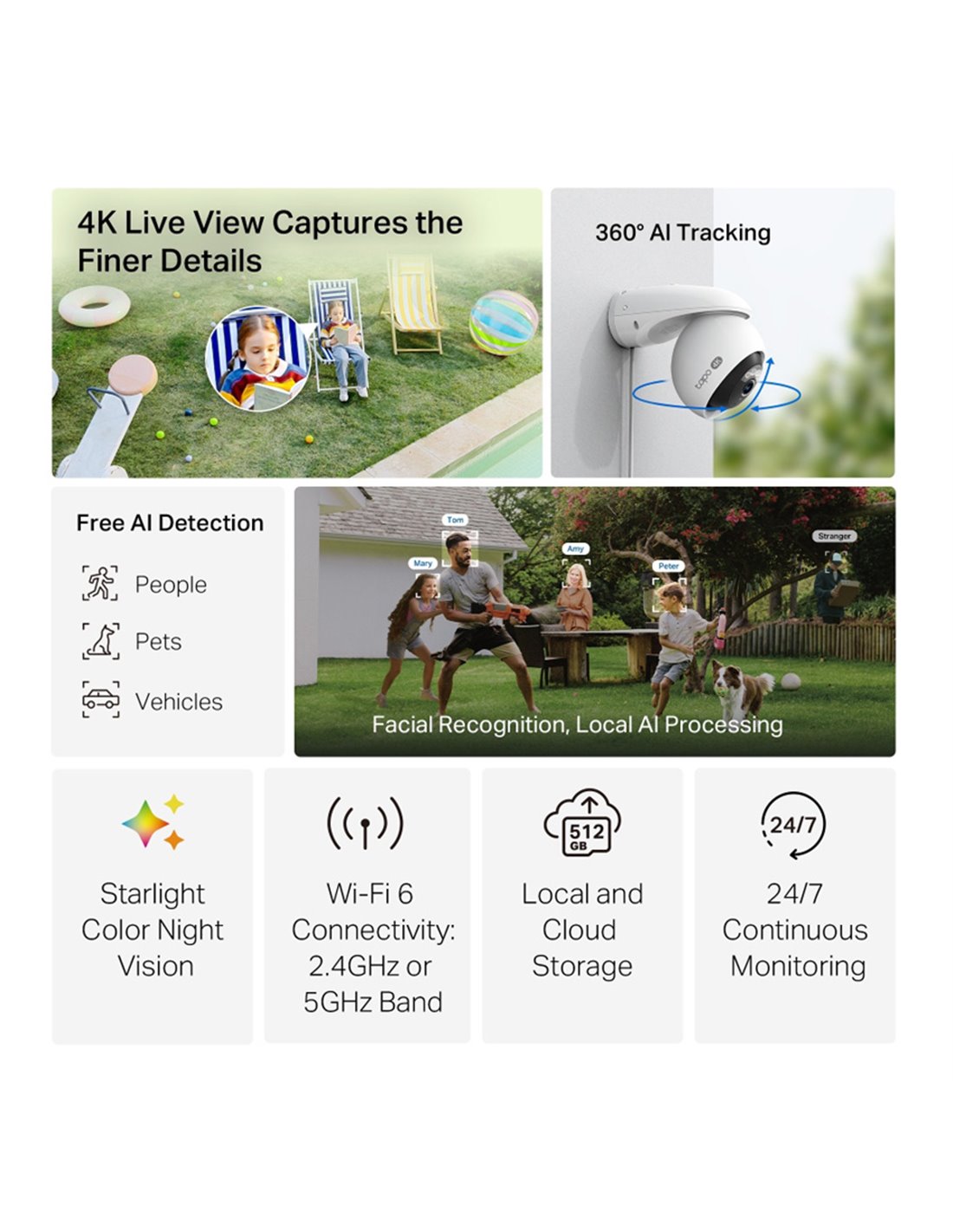 Σύνδεση Wi-Fi 6 Διπλής Ζώνης - Συνδέστε την κάμερα με δρομολογητή Wi-Fi 6 και απολαύστε αυξημένη ταχύτητα και μεγαλύτερη σταθερότητα.
