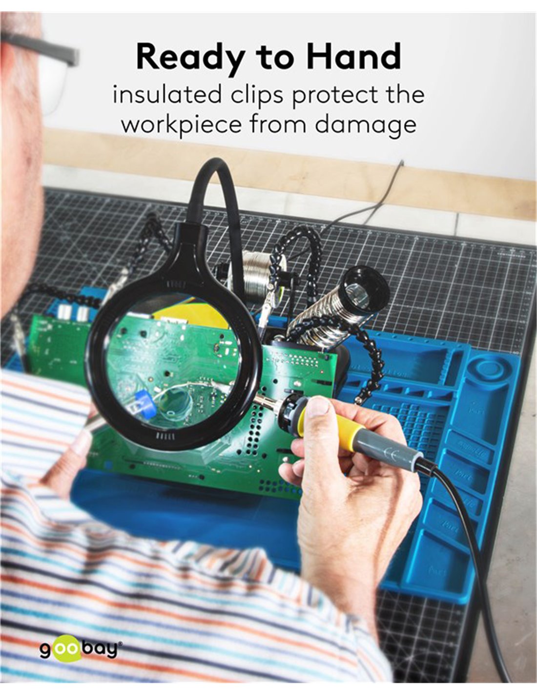 GOOBAY βάση στήριξης πλακέτας 76558 με μεγεθυντικό φακό & θέση για κολλητήρι, 4x βραχίονες, μαύρη