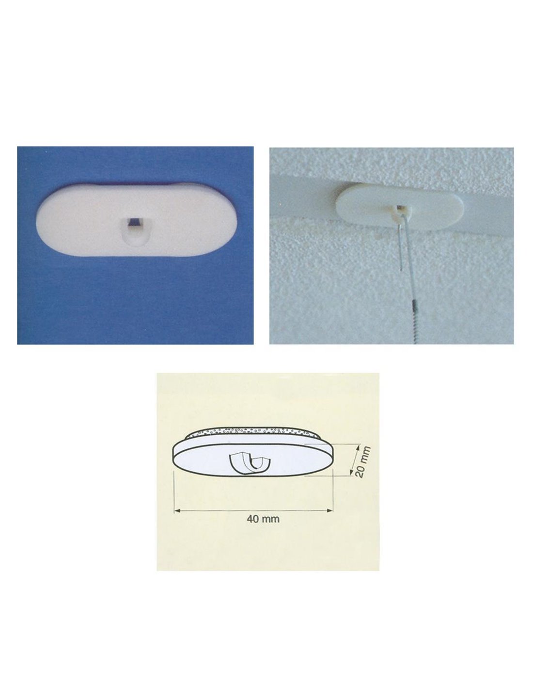Αυτοκόλλητο κρεμαστάρι πλαστικό 40mm. Συγκρατεί εώς 500γρ. βάρος. Για κρέμασμα αφισών κ.α. σε ταβάνι. Πακέτο 10 τεμαχίων.