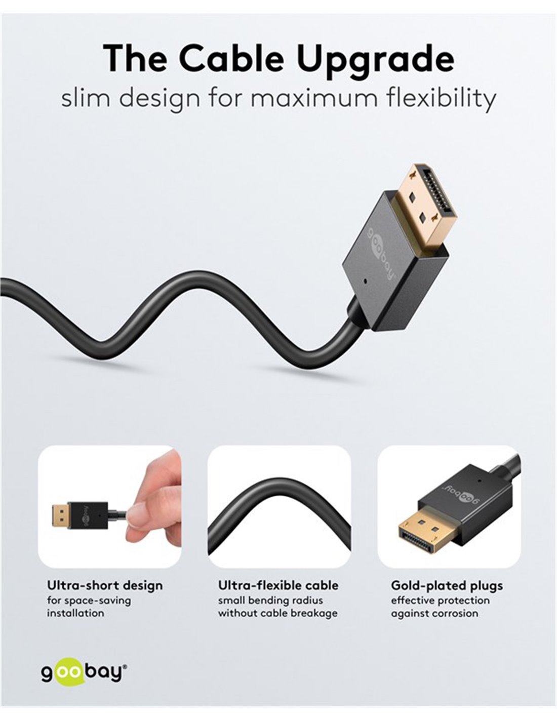 GOOBAY καλώδιο DisplayPort 77442, 8K/120Hz, 40 Gbps, 1m, μαύρο