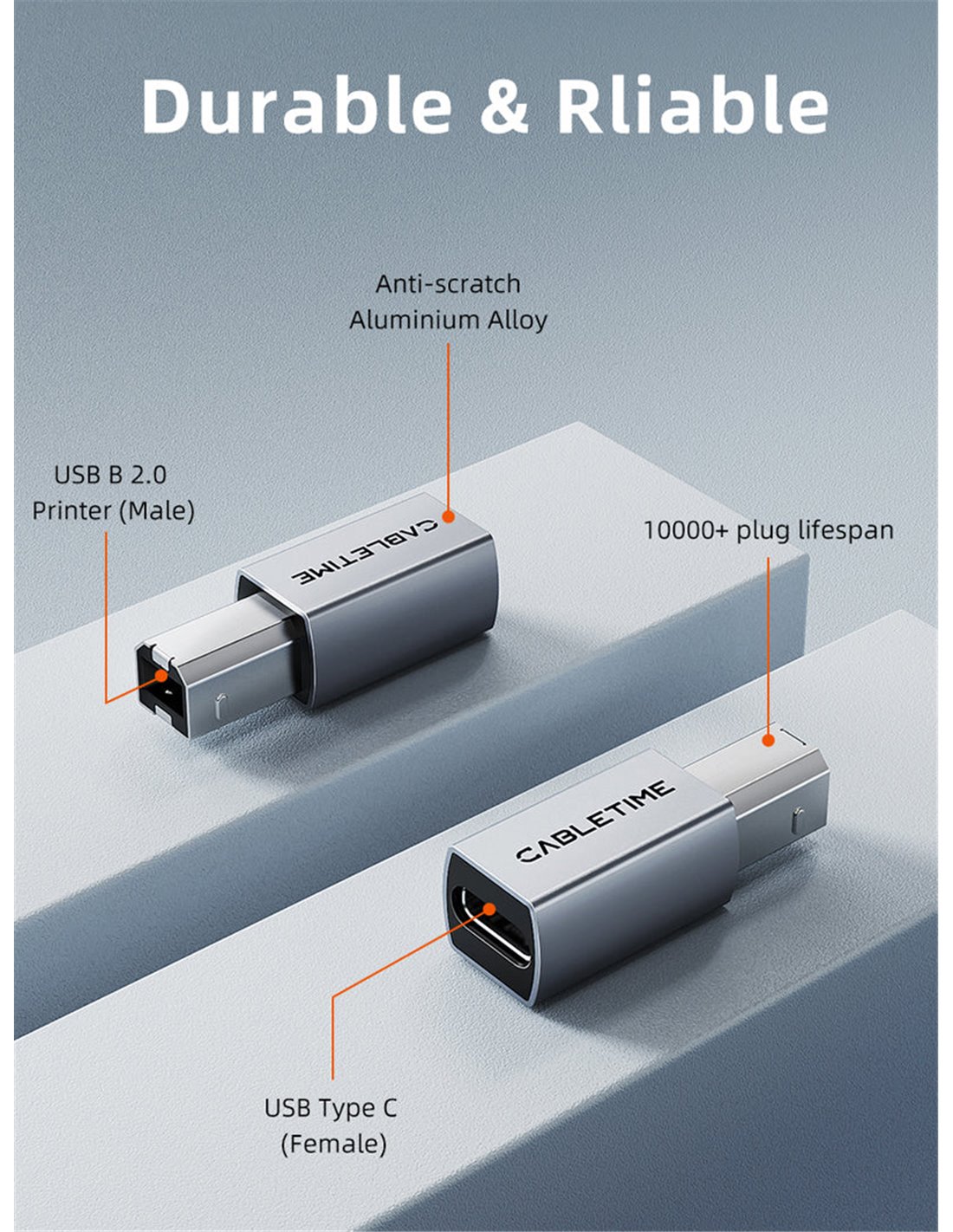 CABLETIME αντάπτορας USB-C σε USB Type B CT-CFBM2-AG, 480Mbps, γκρι