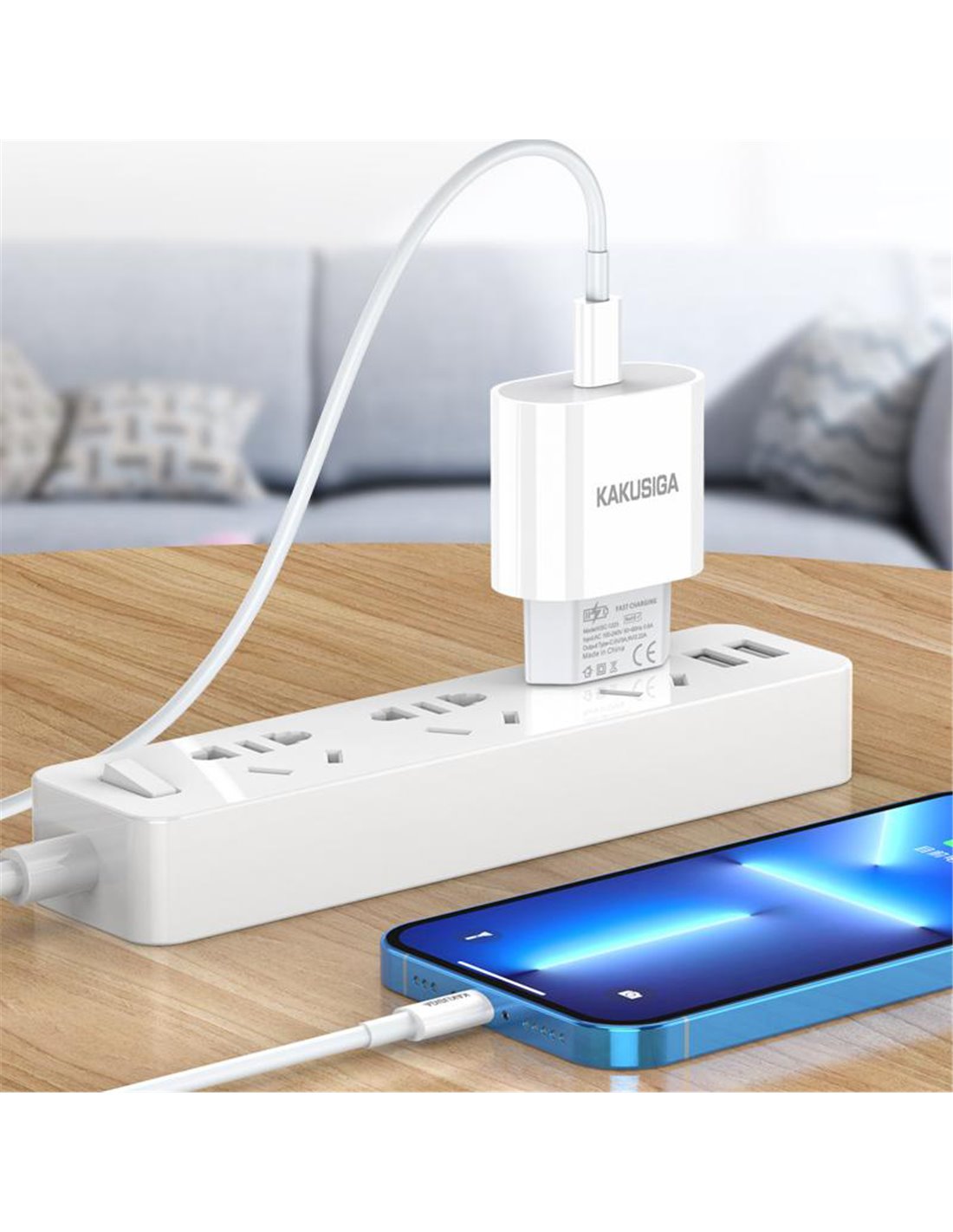 Υψηλής απόδοσης φορτιστής τοίχου της KAKUSIGA, κατασκευασμένος από ανθεκτικό υλικό και συμβατός με συσκευές που φορτίζουν μέσω θύρας USB-C.