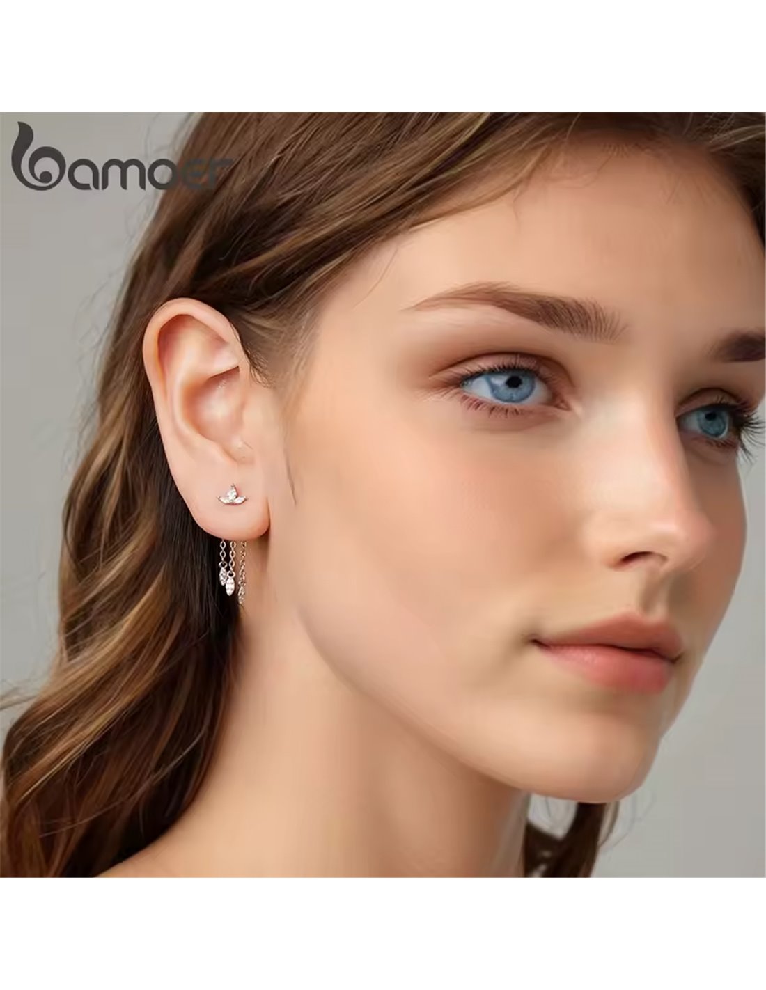 Μοντέρνα σκουλαρίκια καρφωτά Bamoer, κατασκευασμένα από ασήμι 925 και διακοσμημένα με αστραφτερή κυβική ζιρκόνια.