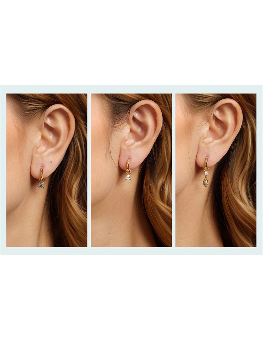 BAMOER σκουλαρίκια κρίκοι YIE262 με 3x σετ charm, κυβική ζιρκόνια, χαλκός, χρυσό