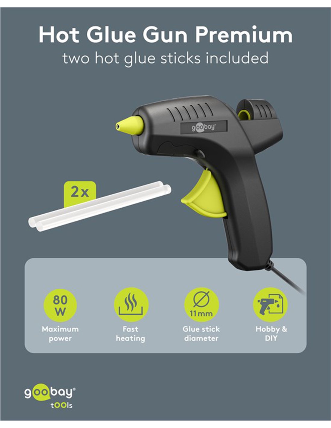 GOOBAY πιστόλι θερμοκόλλησης σιλικόνης 77824 με 2x ράβδους σιλικόνης 11mm, 80W, μαύρο