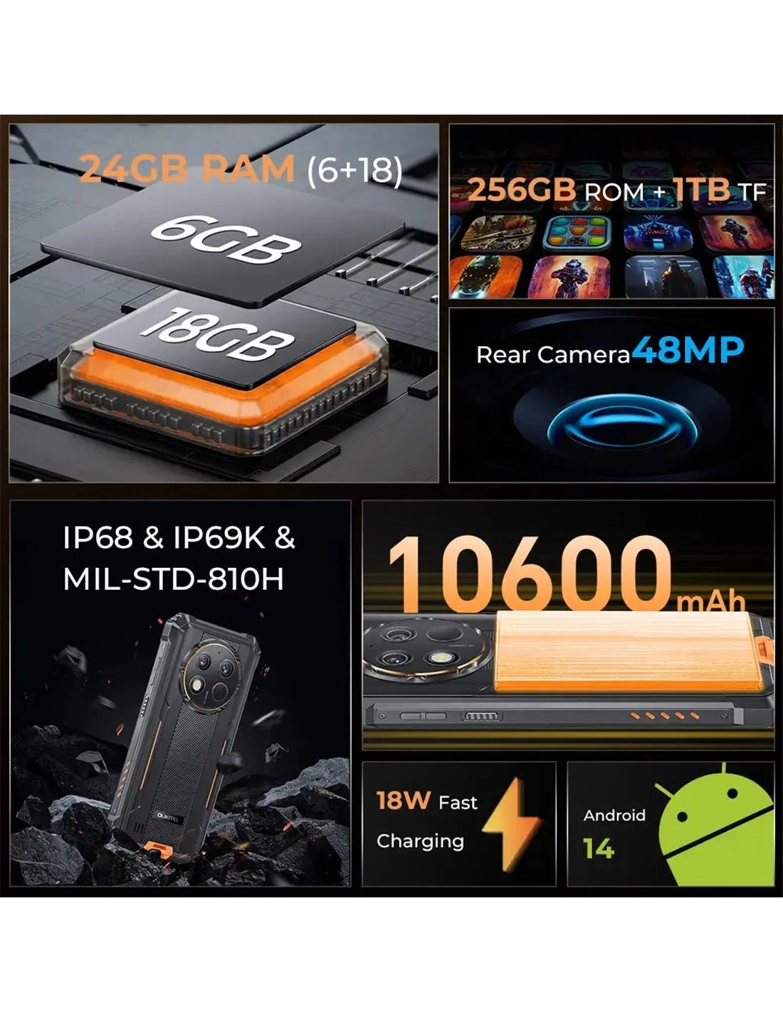 OUKITEL smartphone G1, 6.52", 6/256GB, 10600mAh, IP68/IP69K/MIL-STD-810H, μαύρο