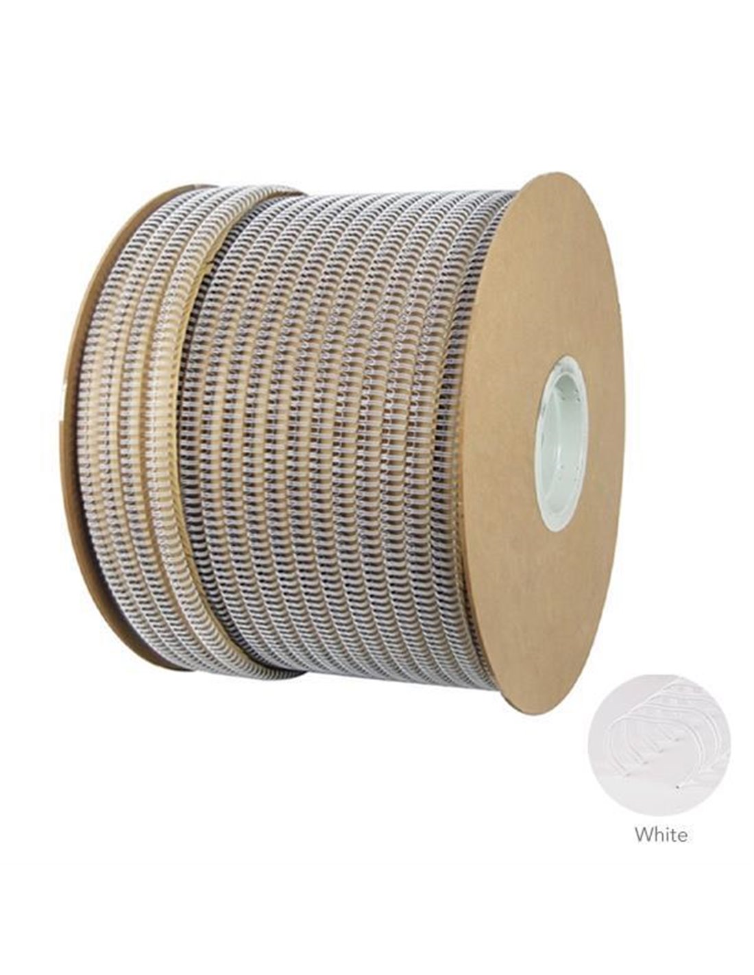 Μεταλλικό σπιράλ βιβλιοδεσίας σε πομπίνα λευκό 1/2". Διάμετρος: 12,7χιλ. Τρύπες: 3:1. Αριθμός σπιρών: 26.000.