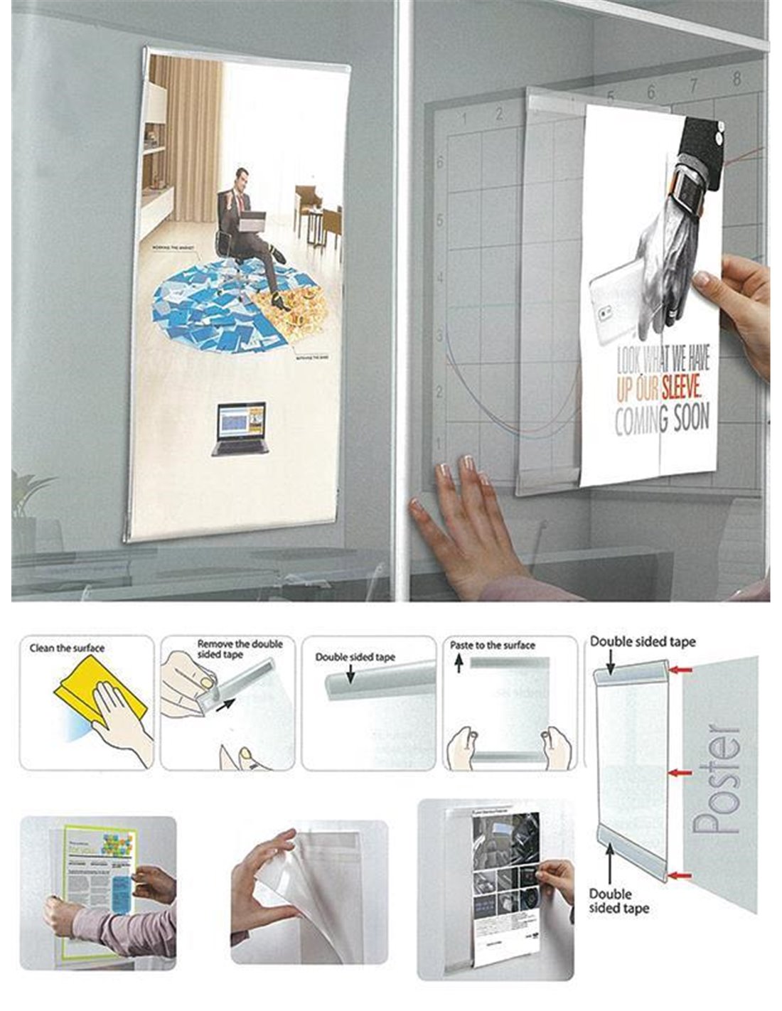 Απο εύκαμπτο υλικό pet , με ταινία διπλής όψης στο πίσω μέρος, μπαίνει σε τοίχους ή τζάμια.