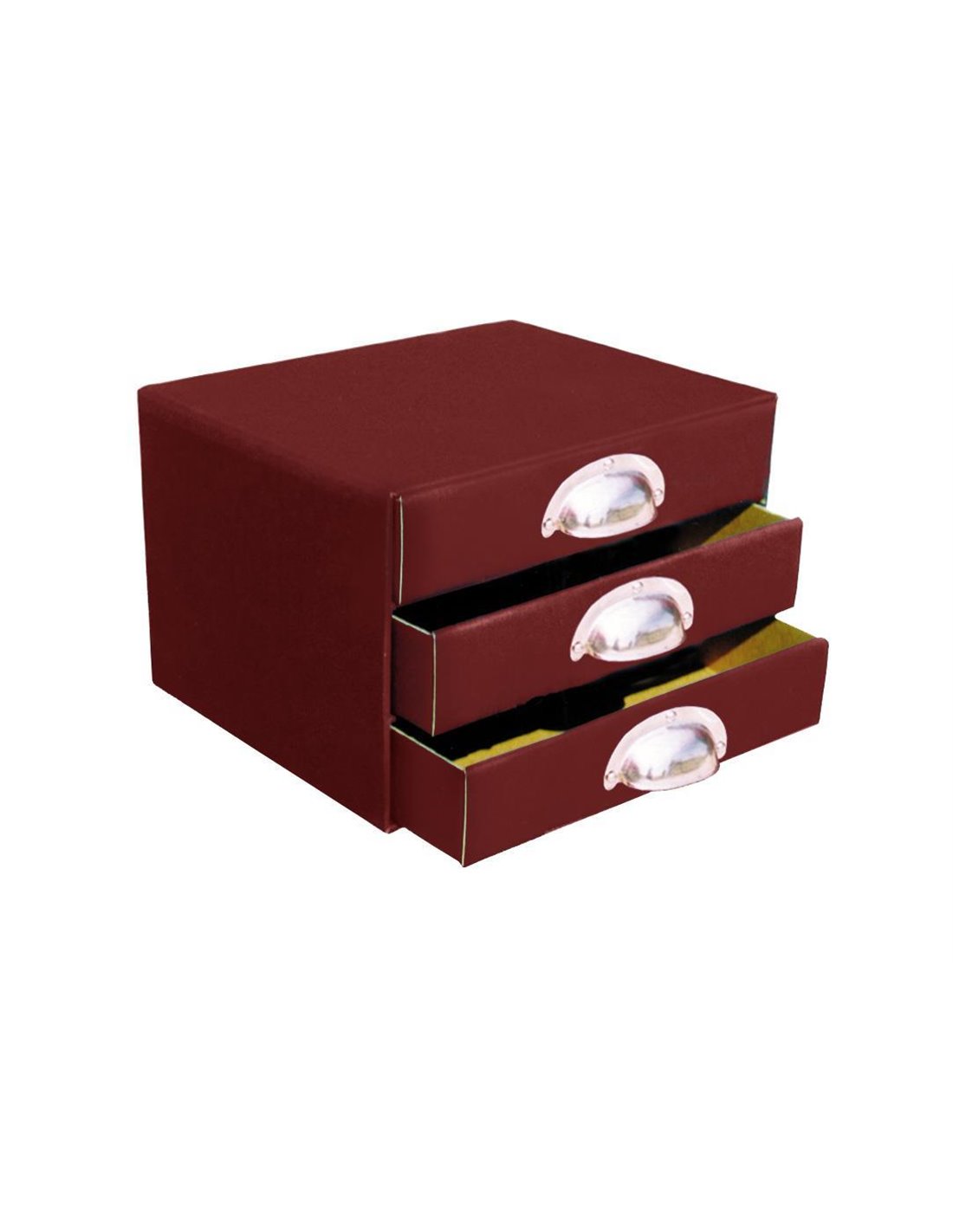 Next συρταριέρα πολυτελείας Α5 με 3 συρτάρια από ύφασμα classic σε μπορντώ χρώμα και μεταλλικές λαβές. Διαστάσεις: 25χ17χ20εκ.