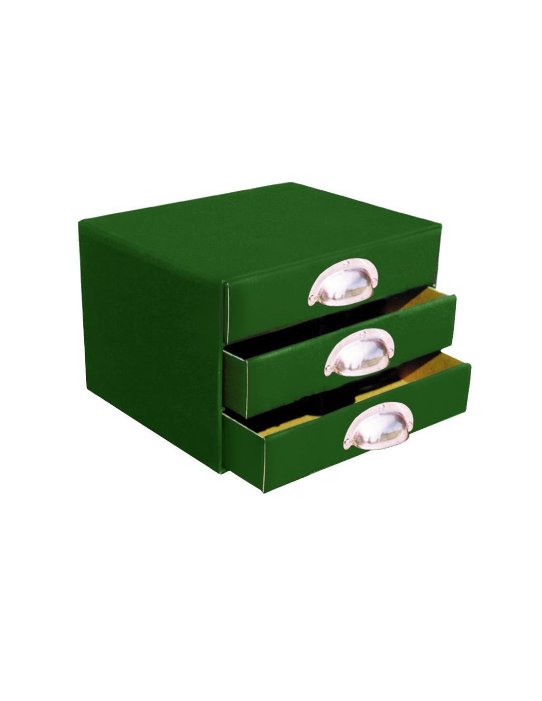 Next συρταριέρα πολυτελείας Α5 με 3 συρτάρια από ύφασμα classic σε πράσινο χρώμα και μεταλλικές λαβές. Διαστάσεις: 25χ17χ20εκ.