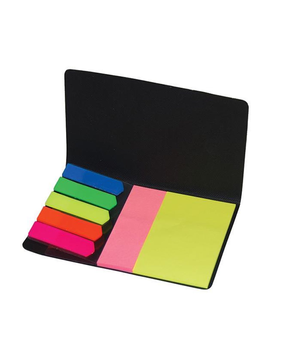 Η θήκη περιλαμβάνει σελιδοδείκτες σε 5 χρώματα. 20 χαρτάκια ροζ 2,5x7,5εκ και 20 χαρτάκια κίτρινα 5x7,5εκ.