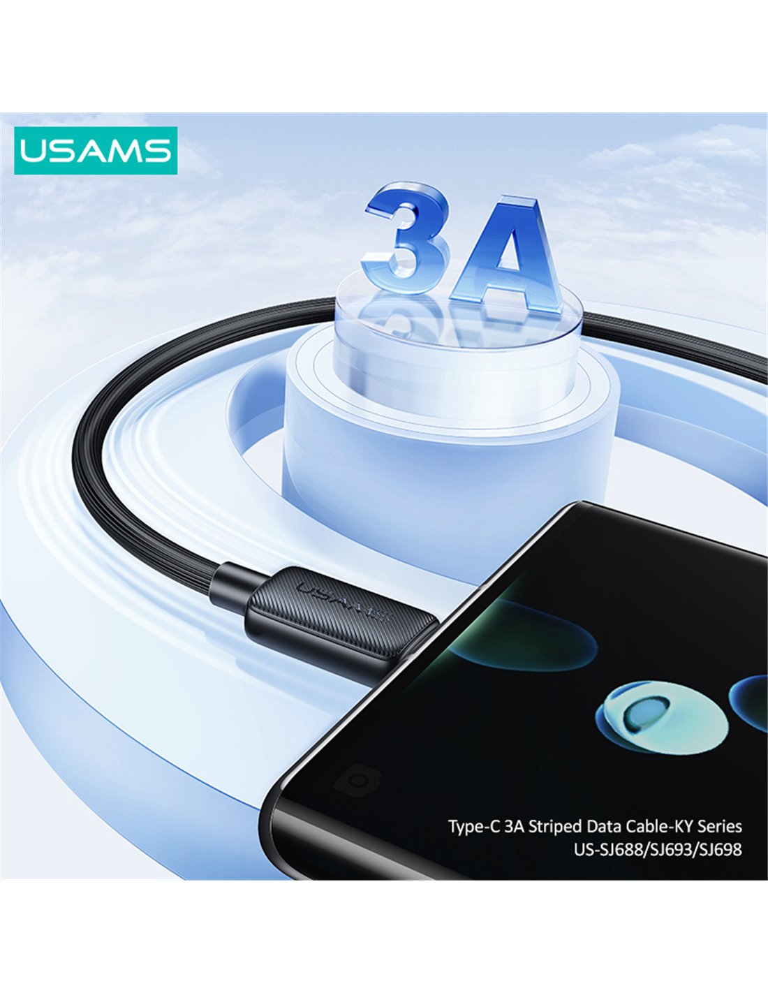 Καλώδιο φόρτισης και μεταφοράς δεδομένων USB-C σε USB της Usams. Υποστηρίζει φόρτιση με απόδοση έως 3A και μεταφορά δεδομένων με ταχύτητα έως 480Mbps.