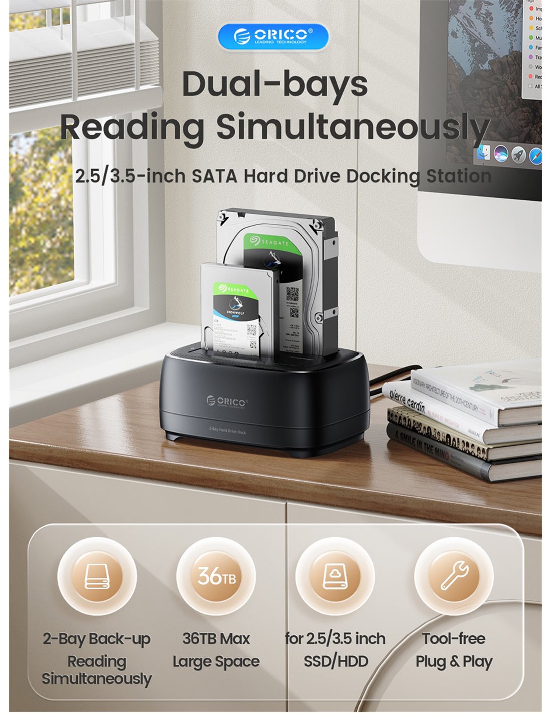 Το docking station της ORICO επιτρέπει την σύνδεση έως 2x 2.5" ή 3.5" SATA HDD/SSD σε έναν υπολογιστή μέσω θύρας USB.
