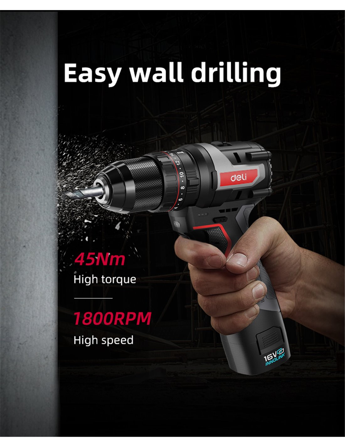 Κρουστικό δραπανοκατσάβιδο της Deli με ισχυρό Brushless μοτέρ 2ης γενιάς για μεγαλύτερη απόδοση και διάρκεια ζωής.