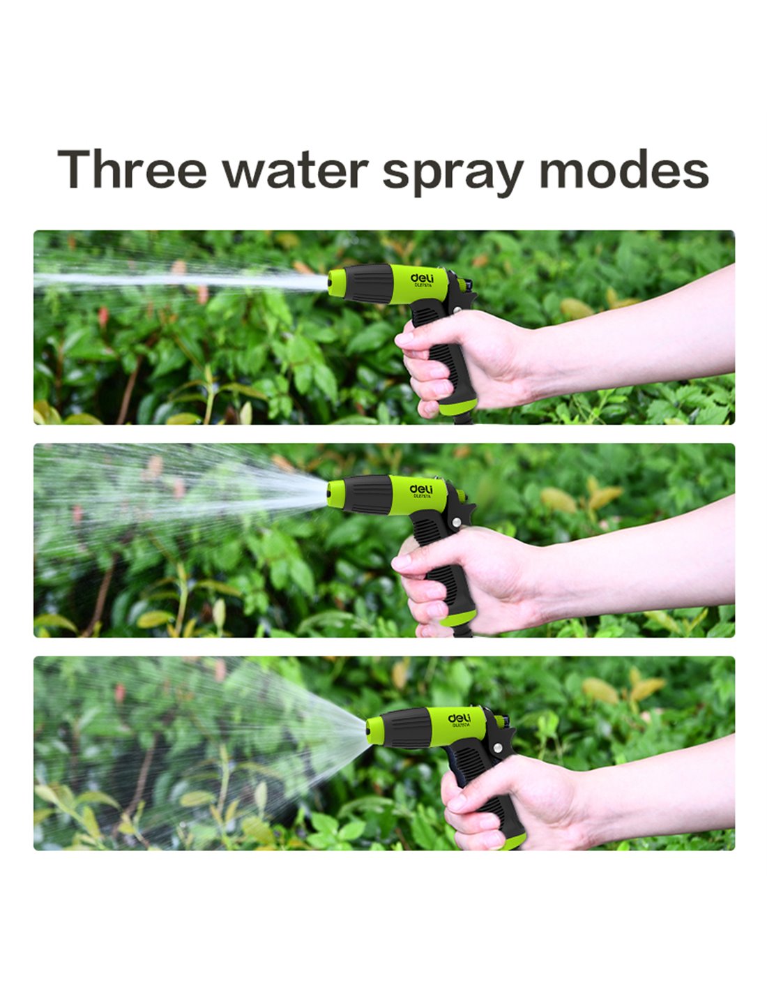 Πιστόλι εκτόξευσης νερού της Deli ιδανικό για εύκολο και αποτελεσματικό πότισμα. Διαθέτει 3 λειτουργίες ψεκασμού, προσφέροντας ευελιξία για διαφορετικές εφαρμογές ενώ η αντιολισθητική λαβή του εφαρμόζει καλά στο χέρι για πιο ξεκούραστο πότισμα.