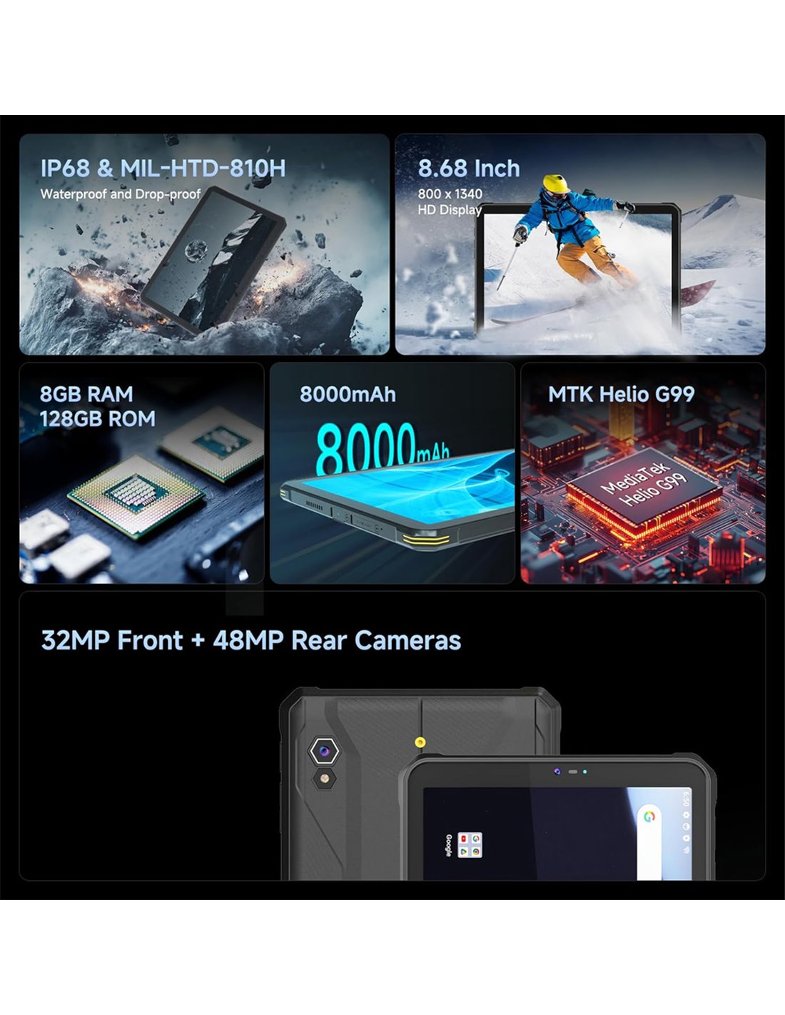 ONERUGGED tablet T1, 8.68", 8/128GB, 4G, 8000mAh, IP68/MIL-STD 810H/Atex Zone 2, μαύρο