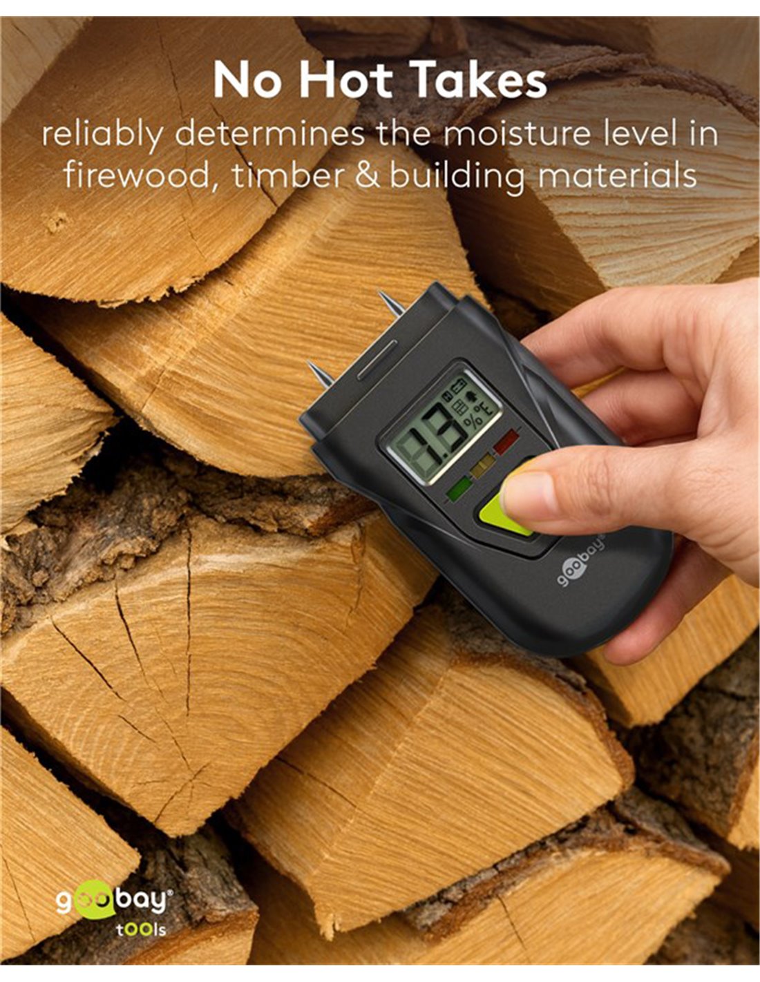 Ψηφιακό θερμόμετρο και υγρασιόμετρο της Goobay, ιδανικό για μέτρηση υγρασίας και θερμοκρασίας σε υλικά όπως ξύλο, μπετόν, τοίχους και άλλα δομικά στοιχεία. Χάρη στον compact σχεδιασμό του, αποτελεί πρακτικό εργαλείο για τεχνικούς, εργασίες ανακαίνισης ή ελέγχους υγρασίας σε εσωτερικούς χώρους.