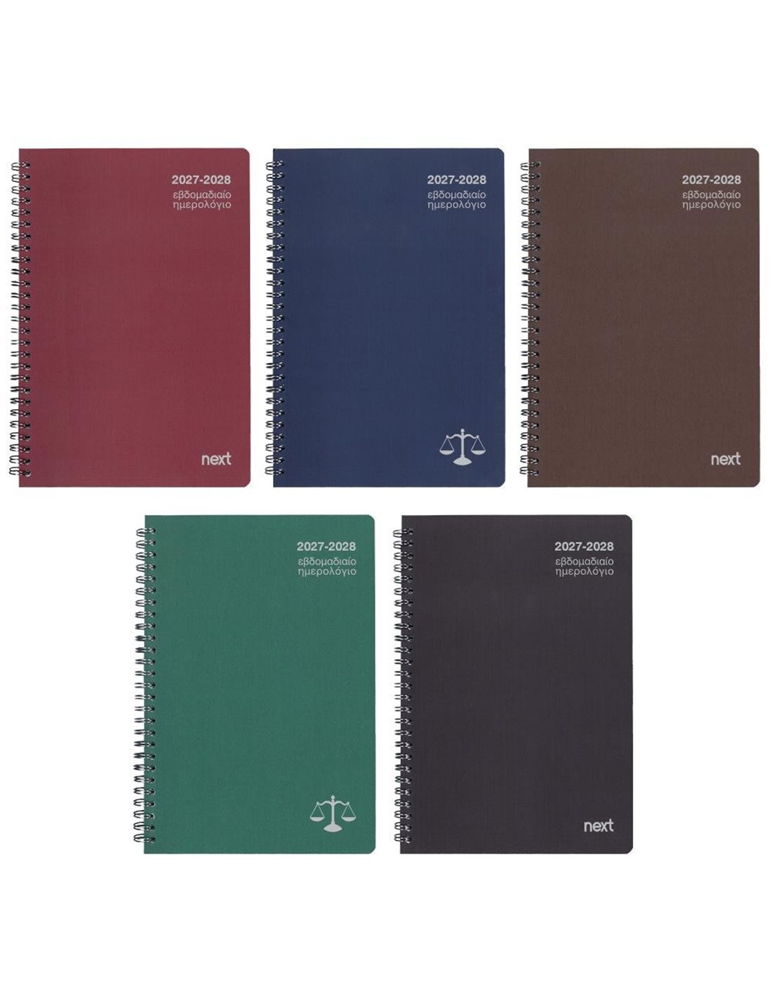 Next ημερολόγιο εβδομαδιαίο σπιράλ 2 ετών: 2027-2028 (δικηγόρων). Με εξώφυλλο από πολύ ανθεκτικό χαρτόνι classic. Σε 5 χρώματα: γκρι, μπλε, μπορντώ, μαύρο και πράσινο. Διαστάσεις: 17x25εκ.