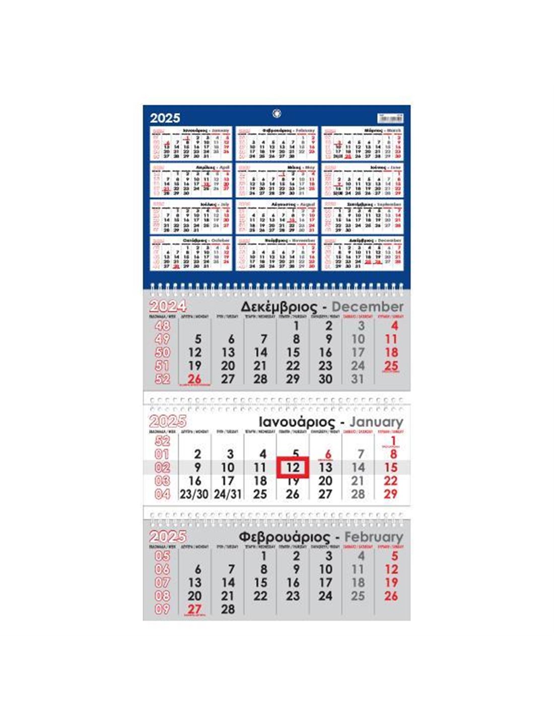 Αποτελείται από 3 χωριστά ημερολόγια, ενωμένα όλα μεταξύ τους σπιράλ.