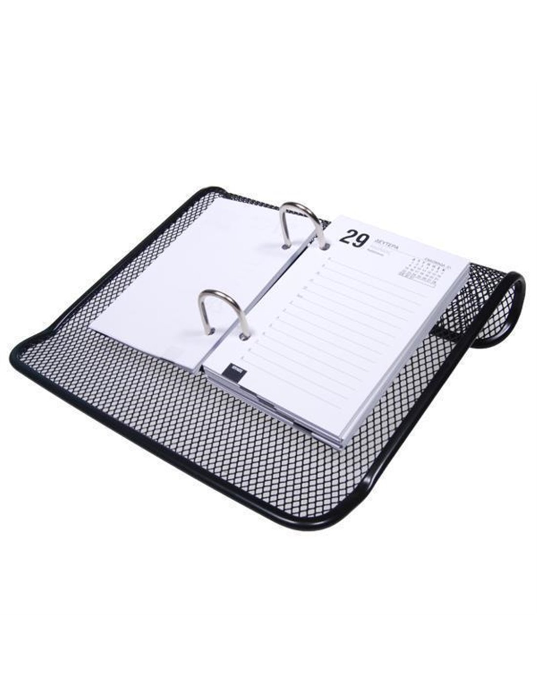 Bάση ημερολογίου μεταλλική. Στο κάτω μέρος μπαίνουν στυλό κ.α. (Το ημερολόγιο δεν περιλαμβάνεται). Χρώμα: μαύρο. Διαστάσεις: 21.5x19x5εκ.