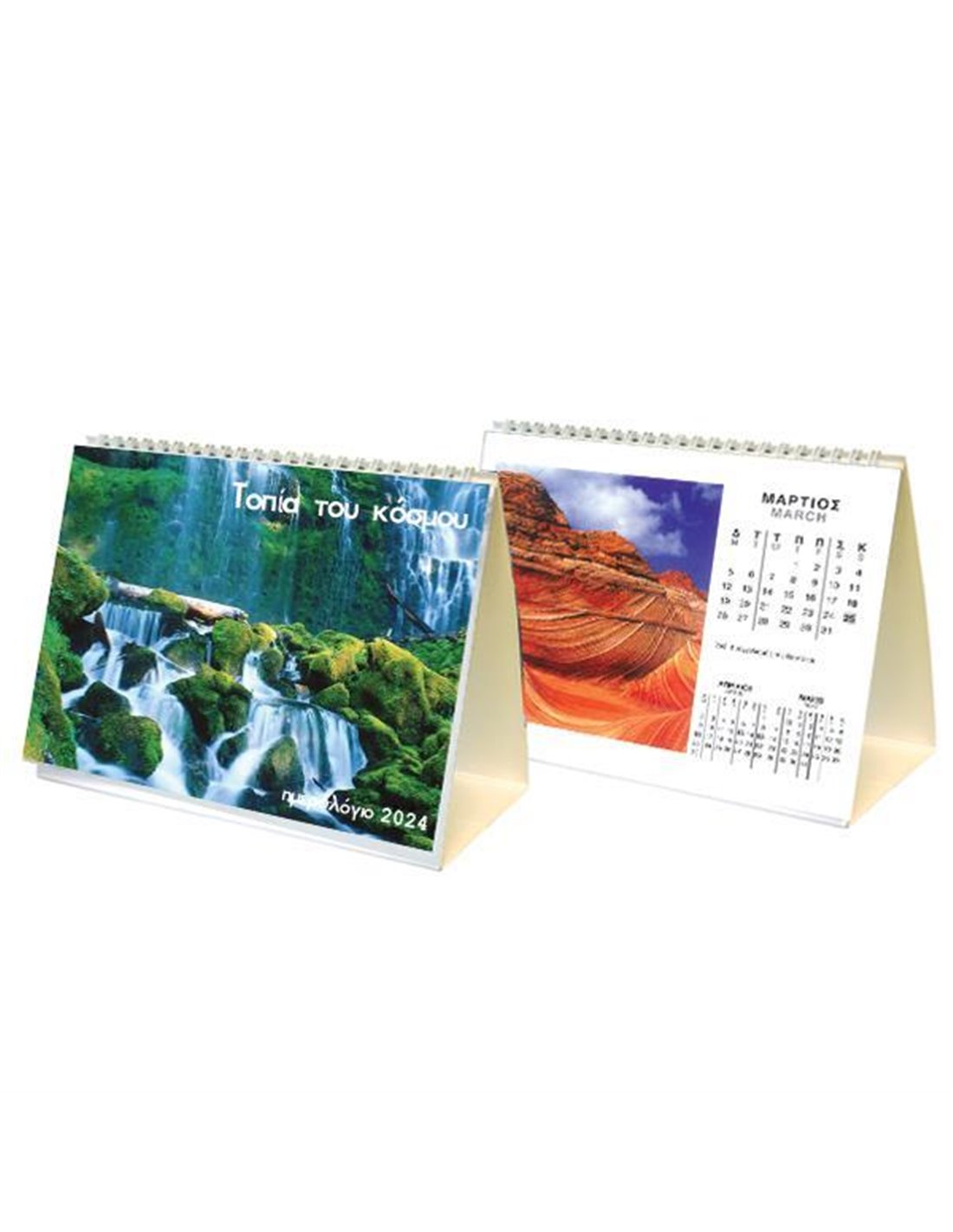 Next ημερολόγιο διμηνιαίο επιτραπέζιο γραφείου. Σπιράλ 14 φύλλων (τρίγωνο) «Τοπία του κόσμου». Διαστάσεις: 12x17εκ.