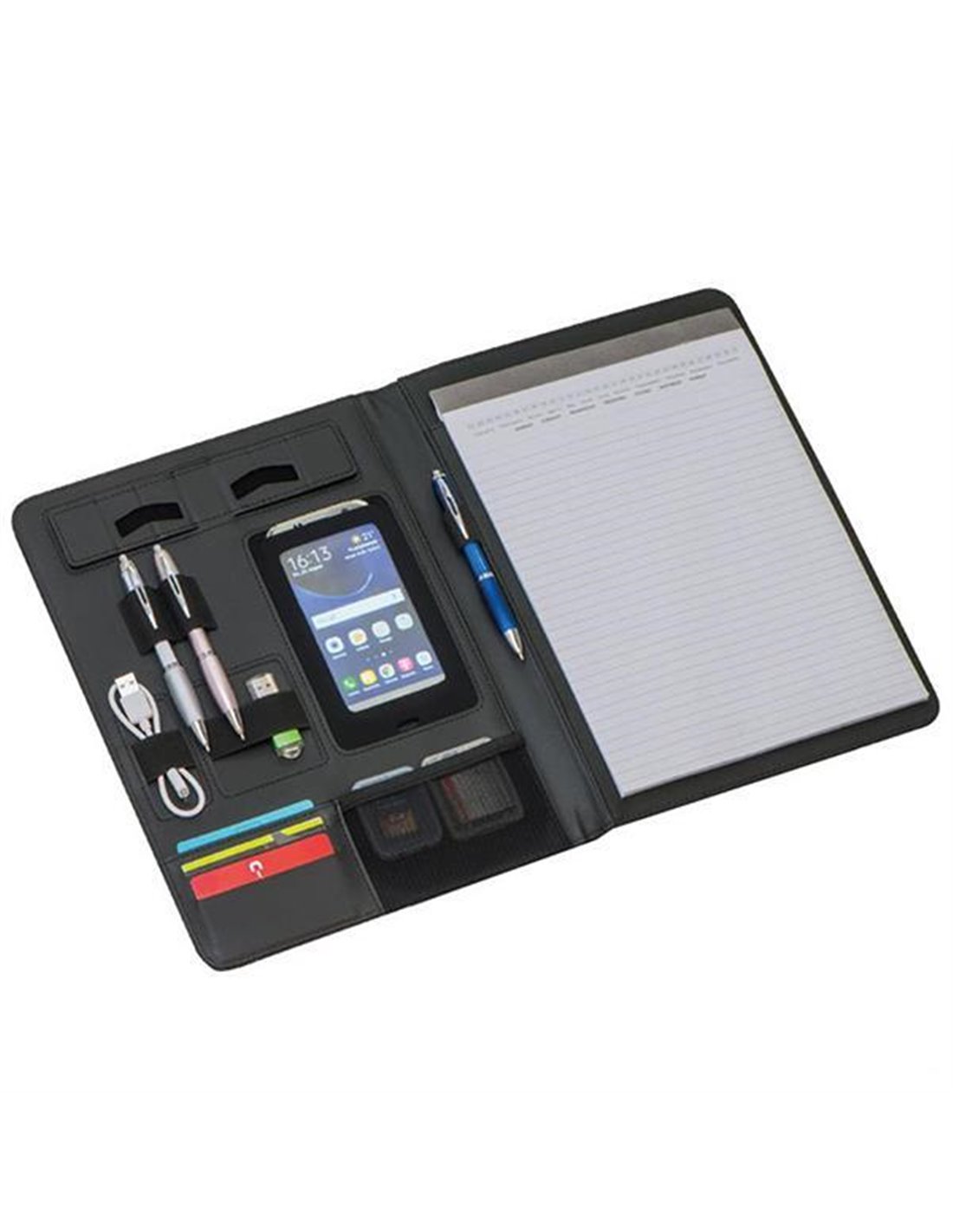 Με μπλοκ σημειώσεων και θήκες για στυλό, κάρτες και κινητό.