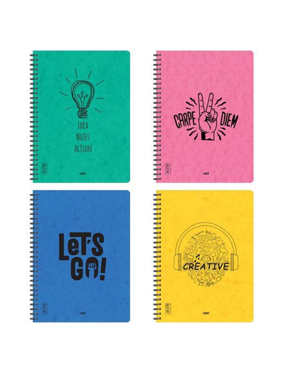 NEXT τετράδιο σπιράλ Rebellion Εξώφυλλο - οπισθόφυλλο πρεσπάν 500γρ., με εκτύπωση. Χαρτί 70γρ., λευκό premium, ριγέ 21x29εκ., 105 φύλλα., 3 θέματα. 4 σχέδια, 4 χρώματα