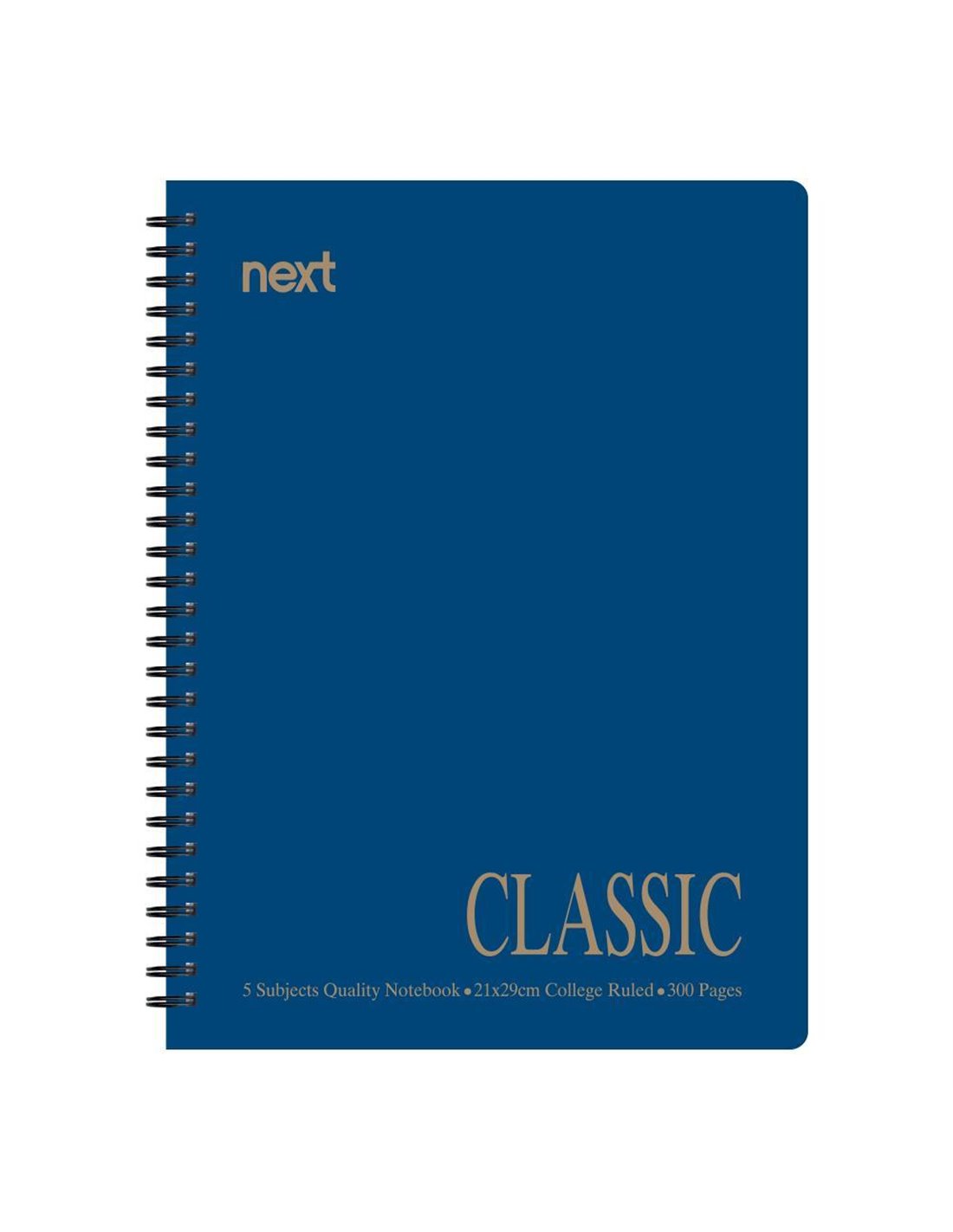 Next classic τετράδιο σπιράλ μπλε 21x29εκ. 5θεμ. 300σελ.