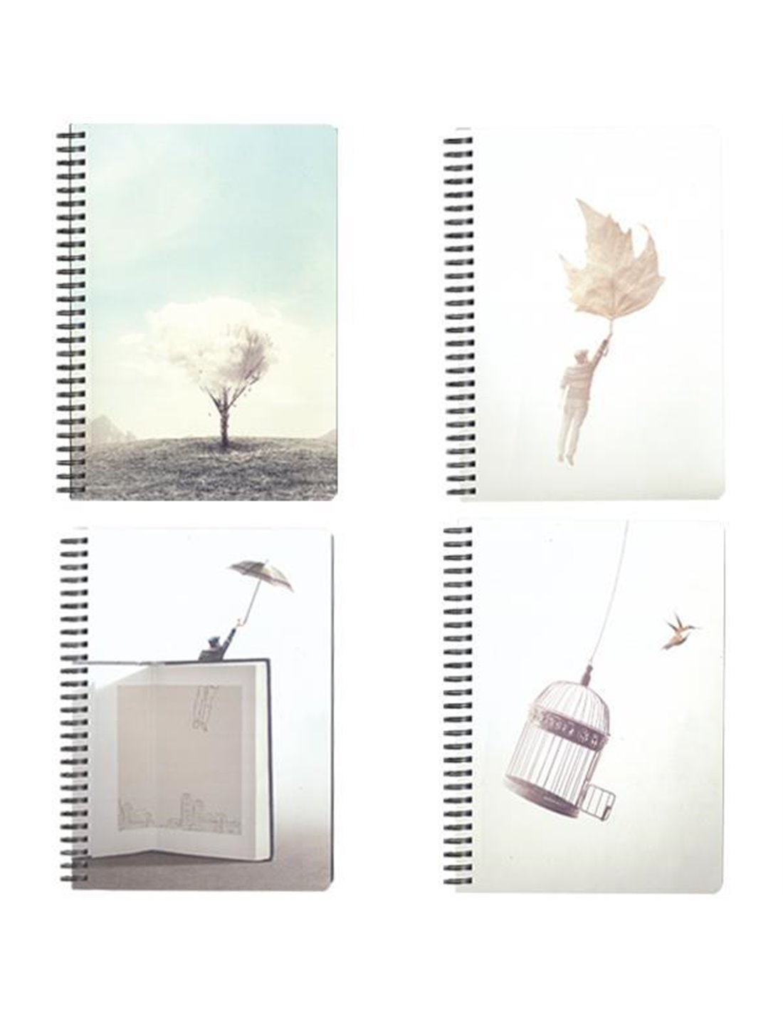 Τετράδιο Escape σπιράλ 3 θεμάτων. Κοκτέηλ 4 σχέδια. Εξώφυλλο σκληρό χαρτόνι FBB 400γρ., 4χρωμία - ματ πλαστικοποίηση. Εσωτερικό χαρτί γραφής 70γρ., ριγέ. Οπισθόφυλλο χοντρό καφέ χαρτόνι 800γρ. 105 φύλλα. Διαστάσεις: 21x29εκ.