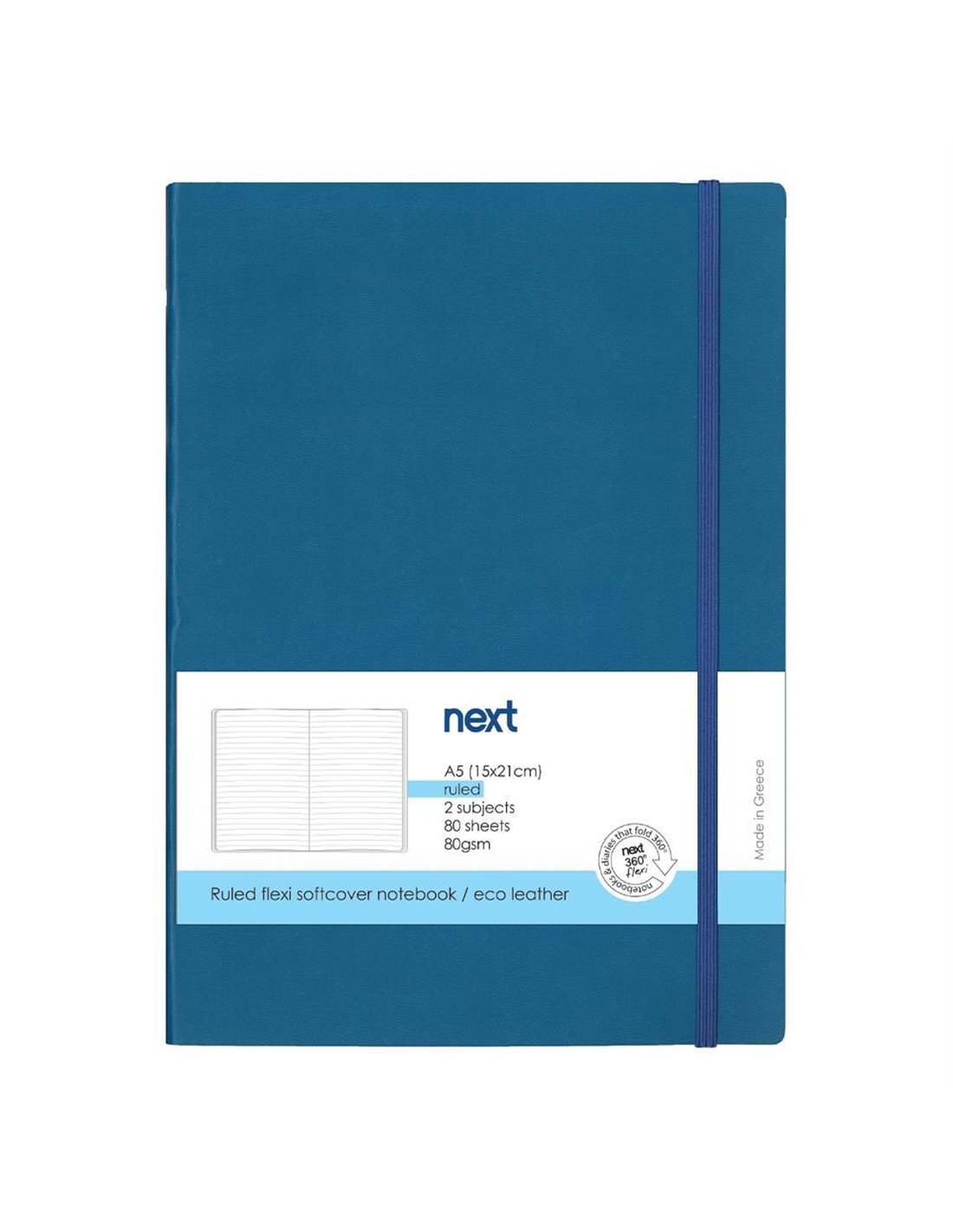 Next Premium μπλε τετράδιο ριγέ flexi λάστιχο 2 θέματα 80 φύλλα 14x21εκ. Δυνατότητα εκτύπωσης