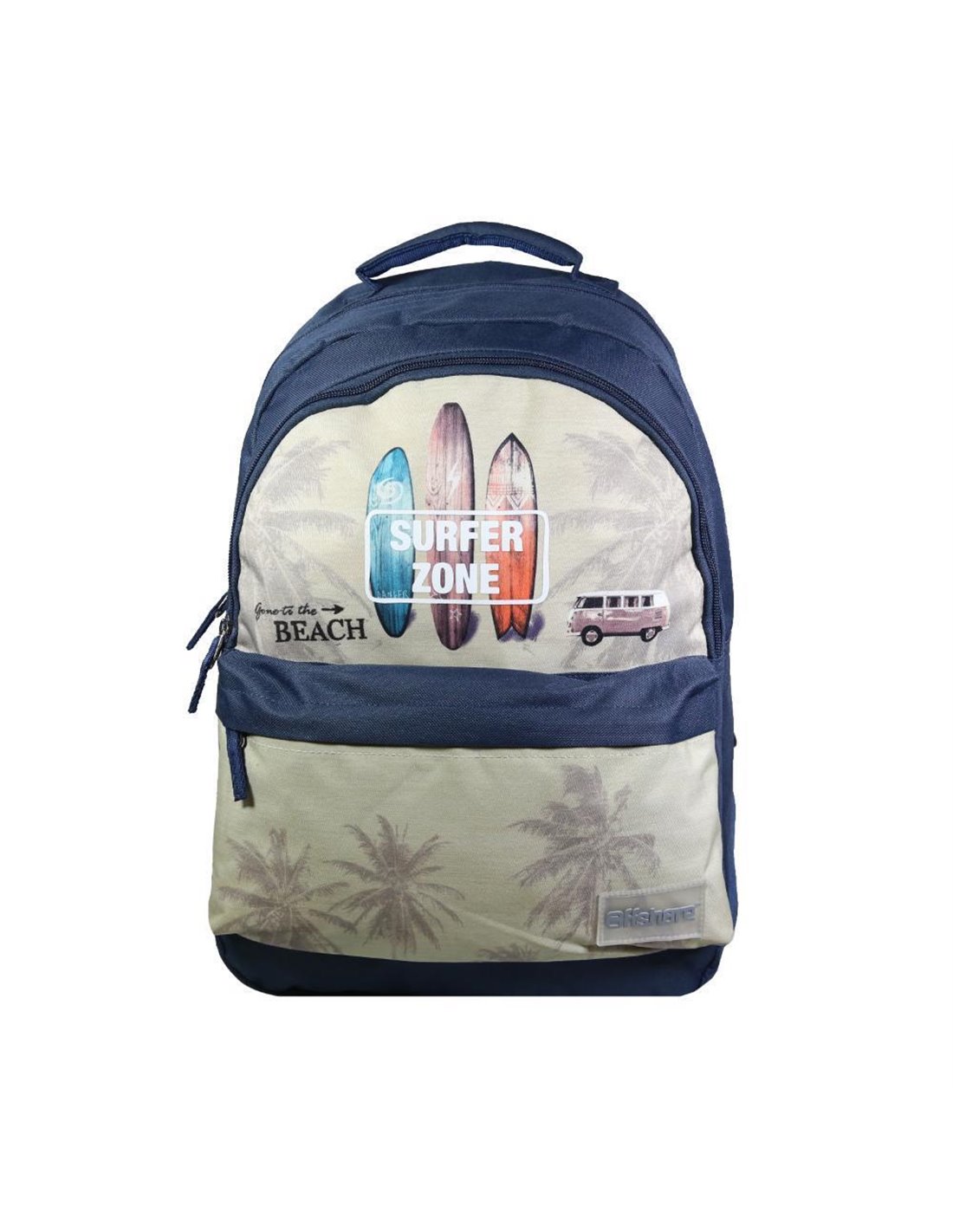 Η Bagtrotter τσάντα πλάτης "Surfer Zone" είναι η ιδανική επιλογή για λάτρεις του surf και της περιπέτειας! Με διαστάσεις 45x31x13εκ. και 2 ευρύχωρες θήκες, προσφέρει αρκετό χώρο για βιβλία, τετράδια, αξεσουάρ και προσωπικά αντικείμενα, διατηρώντας τα όλα οργανωμένα. Κατασκευασμένη από ανθεκτικά και ελαφριά υλικά, εξασφαλίζει αντοχή και άνεση στη χρήση, ενώ οι ρυθμιζόμενοι - ενισχυμένοι ιμάντες ώμου προσφέρουν εργονομική εφαρμογή. Ο μοντέρνος σχεδιασμός με θέμα το surf προσδίδει μοναδικό χαρακτήρα στην καθημερινότητά σας!
